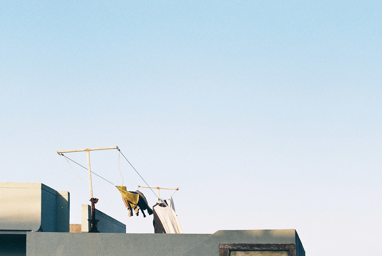 빨랫줄에 걸터앉아