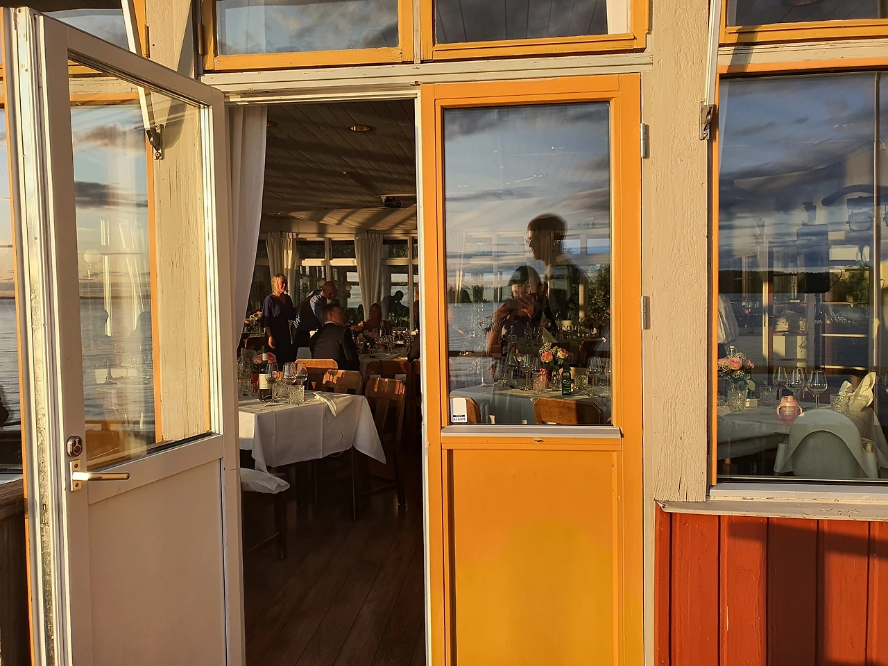 늦었다. 거의 두 시간 전에 나갔는데! 요엘과 테스는 Ekerö라는 스톡홀름 서쪽에 위치한 섬에서 결혼식을 올렸다. 배를 타고 가야 하는데 이게 어떤 시스템으로 운영되는지 몰라 도심을 한 바퀴 빙 돌아갔고 스웨덴 왕의 궁전인 드로트닝홀름 궁전 전까지 정말 차가 미친 듯이 막혔다. 한 줄로 서서 가는 차를 보며 저게 설마 우리랑 같은 결혼식 가는 차인가 했다만 그런 차는 하나도 없었고 내려서도 구글 지도를 잘 못 찍는 바람에 우왕좌왕하다가 결혼식 사회자인 Toastmaster가 우리에게 전화할 지경에 이르렀다. 알고 보니 결혼식이 열리는 곳은 선착장 같은 곳에 연결된 아주 자그마한 섬 위에 있는 레스토랑으로 주차장에서 내려서 걸어서 가야 했다.