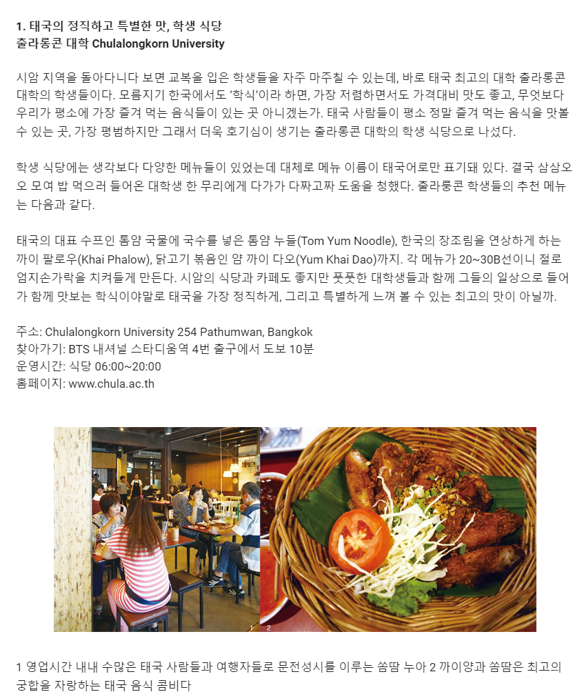 태국 내 1위 대학인 시암 광장 인근의 품격 넘치는 쭐라롱꼰대학을 방문해 보세요. 학생식당에서의 저렴하고 맛있는 태국 음식은 영원히 잊지 못할 추억이 될 겁니다.