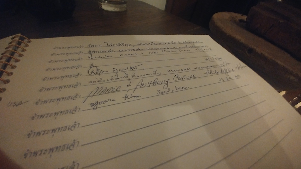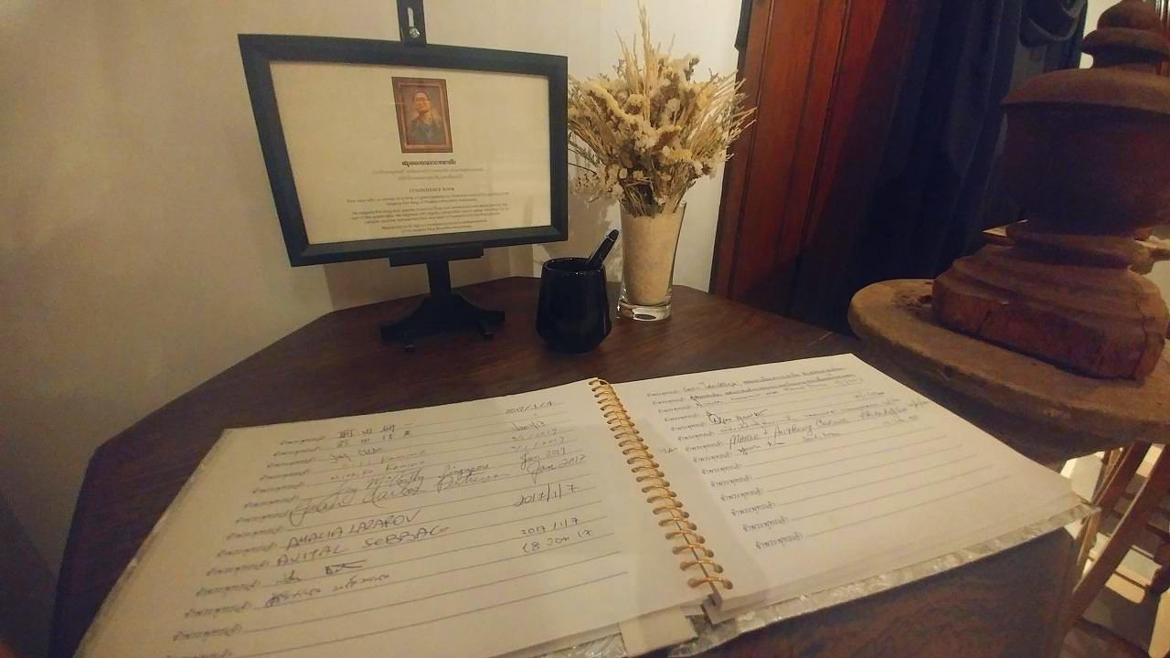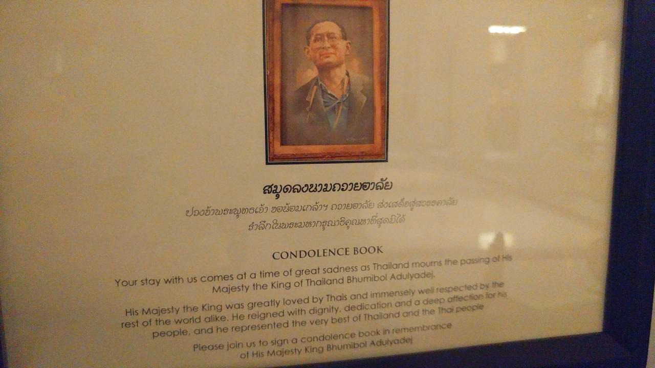 1층 로비 쪽을 구경하는데 불상과 'condolence book'이 놓여있었다. 국왕의 서거를 추모하는 방명록이었다. 라마 9세 국왕은 2016년 10월 13일 서거했는데 1년상을 치러서 전 국가가 추모행렬을 이루고 있었다. 2017년 10월에 국왕의 장례식을 거행하고 2019년에 라마 10세의 대관식을 하게 된다. 추모록에 이름을 남기며 슬픔을 함께 하고 싶었다.