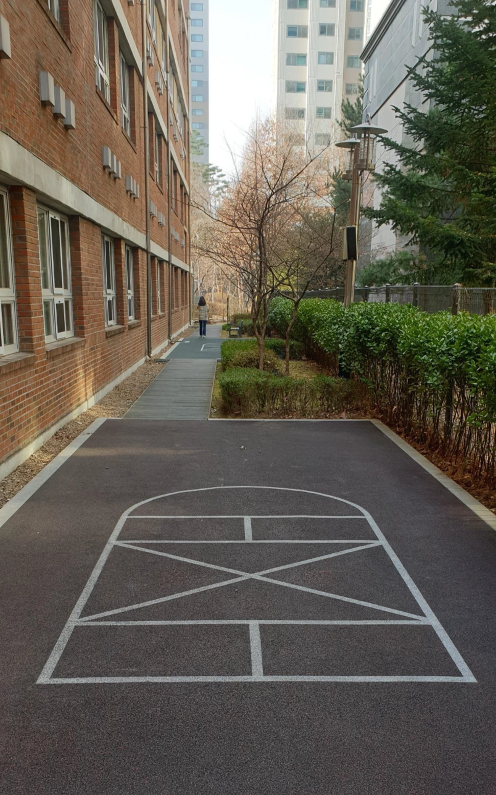 '언제 이만큼 컸을까? 분명 나도 초등학생이었던 적이 있었을 텐데.'라 흘러간 세월에 놀라며 학교를 찬찬히 한번 둘러보았다. 그때 무언가 재미있는 바닥을 발견했다. 어릴 때 동네 친구들과 시간 가는 줄 모르고 하루 종일 하던 땅따먹기(사방치기)가 그려져 있는 것이다. '와! 요즘 아이들은 이게 무슨 놀이인 줄 알까?'