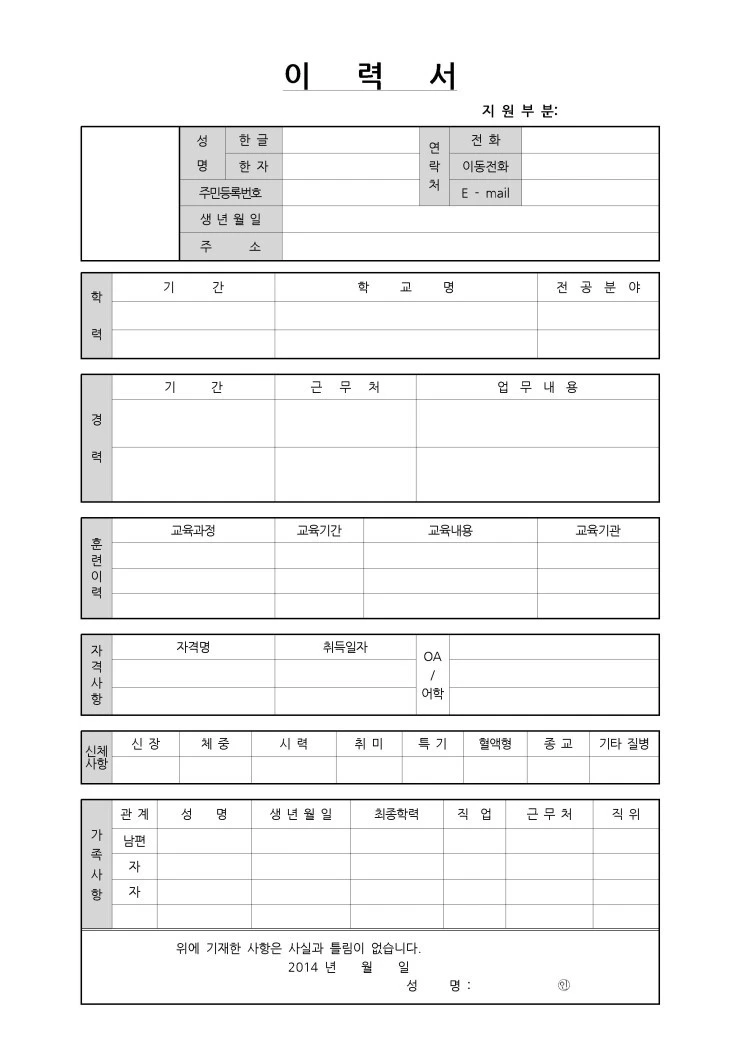 나: 아 이건 가족관계를 써야 하는데 가족 이름이랑 생년월일, 최종학력, 직업, 근무처 쓰는 거야.