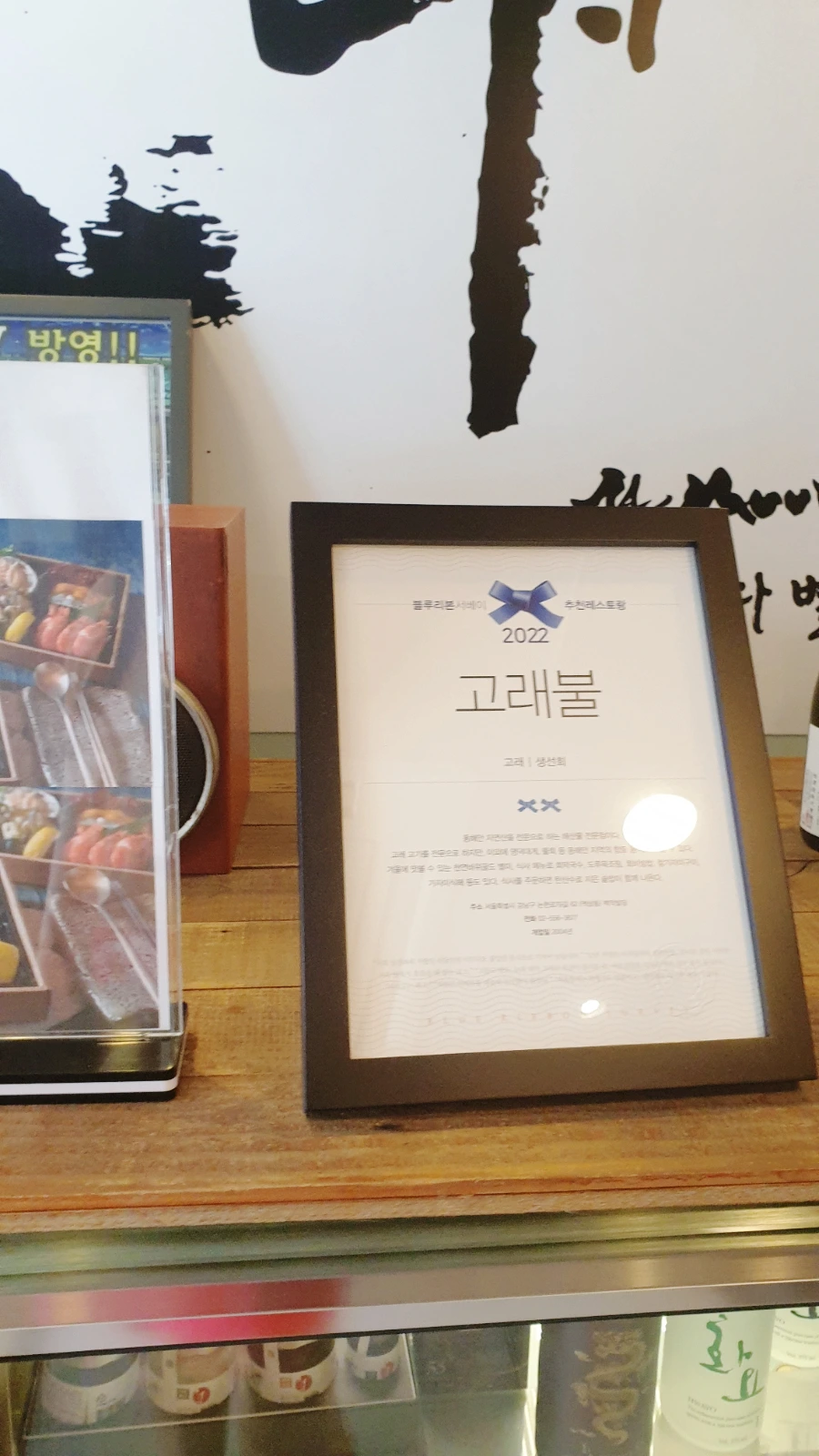 21년 전통의 해산물 전문 고급 한식당 고래불을 다녀왔어요. 제철 음식으로 만든 회라 연예인도 많이 찾고요. 고래불대개나 고래고기, 독도생꽃새우 등 흔치 않은 메뉴가 가득해서 더더욱 유명합니다. 입구는 좁은 듯한데 2층으로 올라가면 되고요. 올라가는 길에 방문한 연예인 사인 보는 재미도 가득합니다.