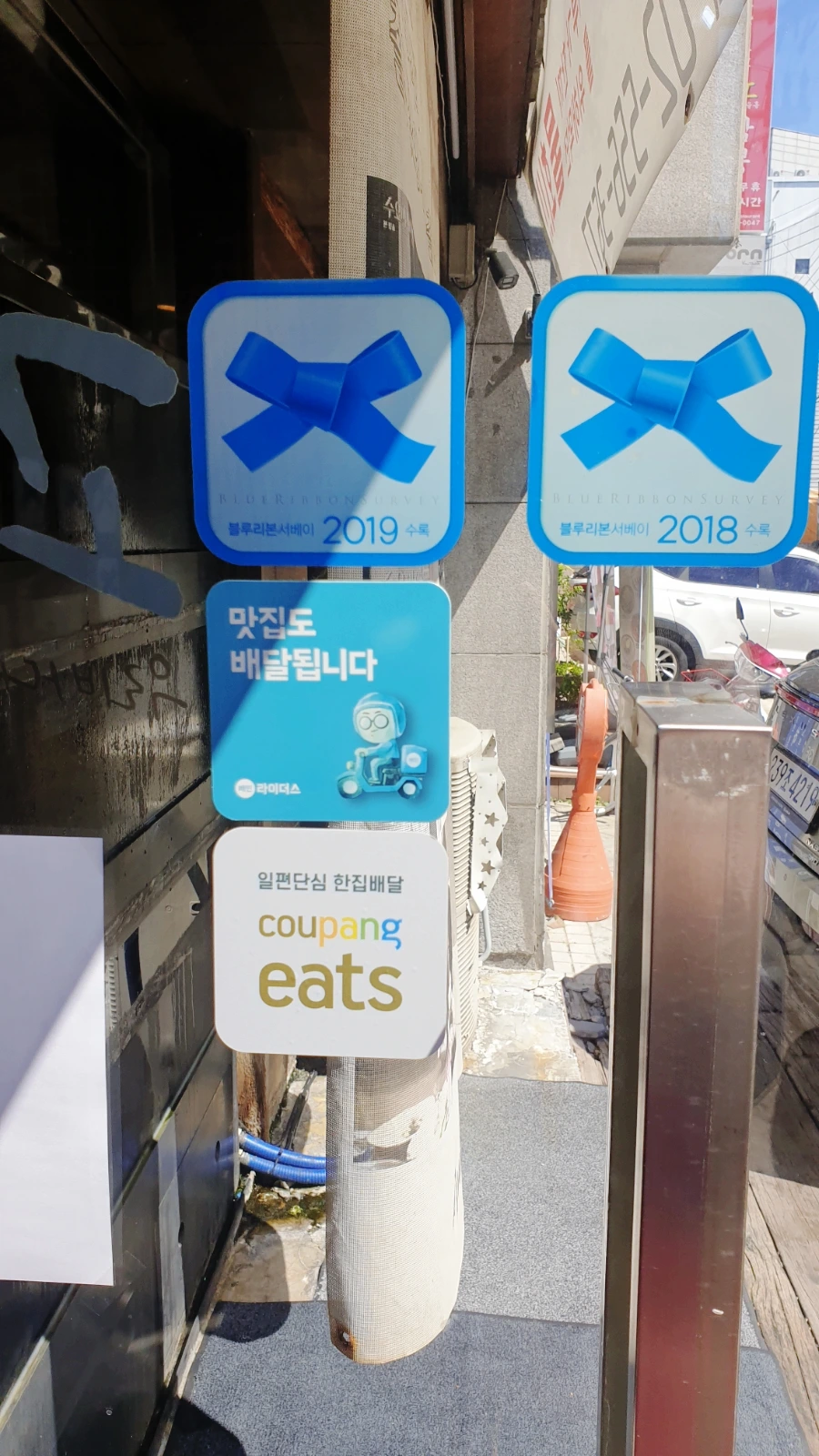 연휴 시작 날이라 전화하니깐 다행히 자리를 잡을 수가 있었습니다. 발레파킹이 가능하고 주말에는 주차공간이 제공됩니다. 쿠팡 잇츠와 배달의민족으로도 주문 가능하고요, 2018년 2019년 블루리본을 획득했네요. 너무나 기대를 다듬고 들어가 봅니다.