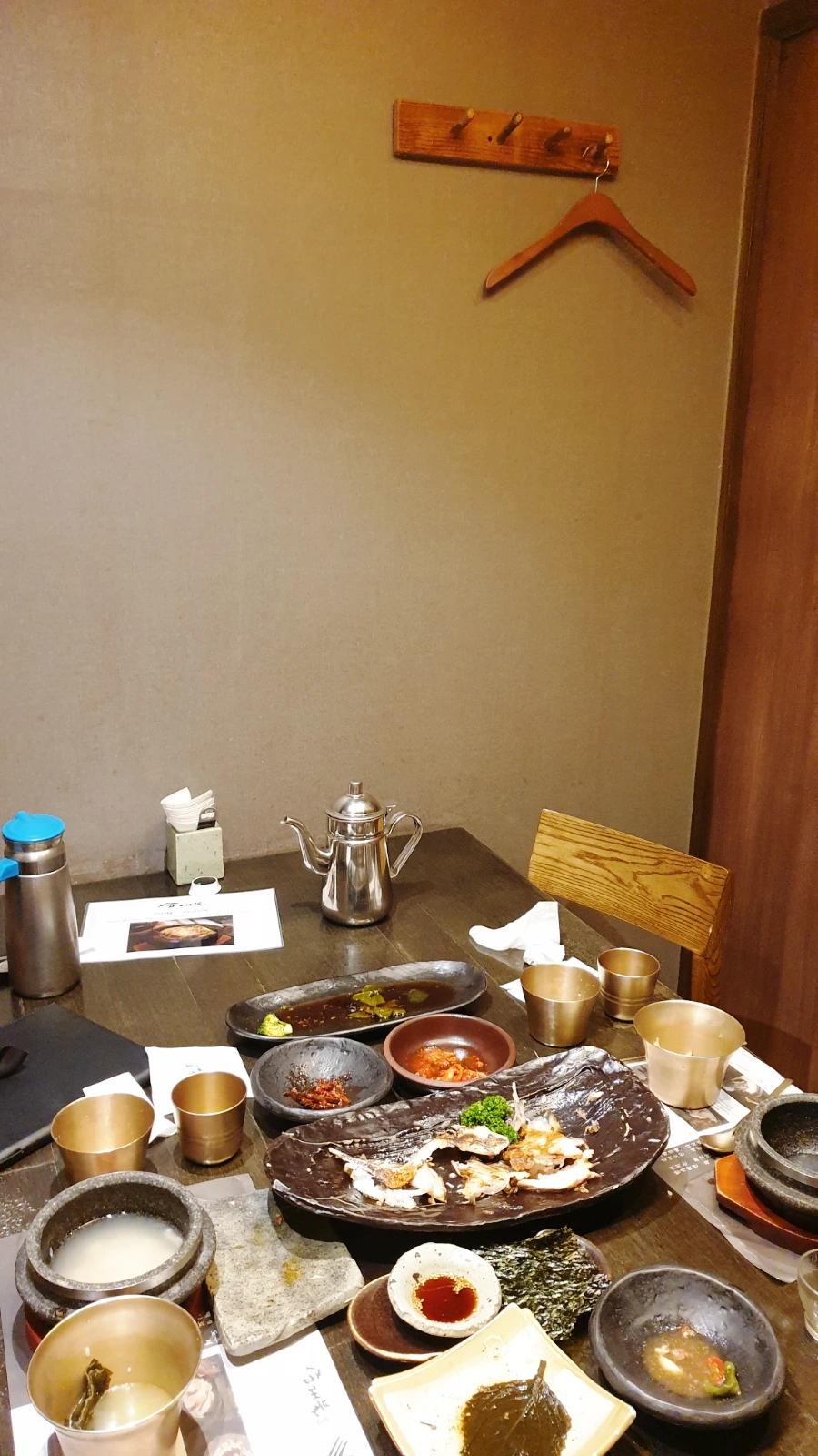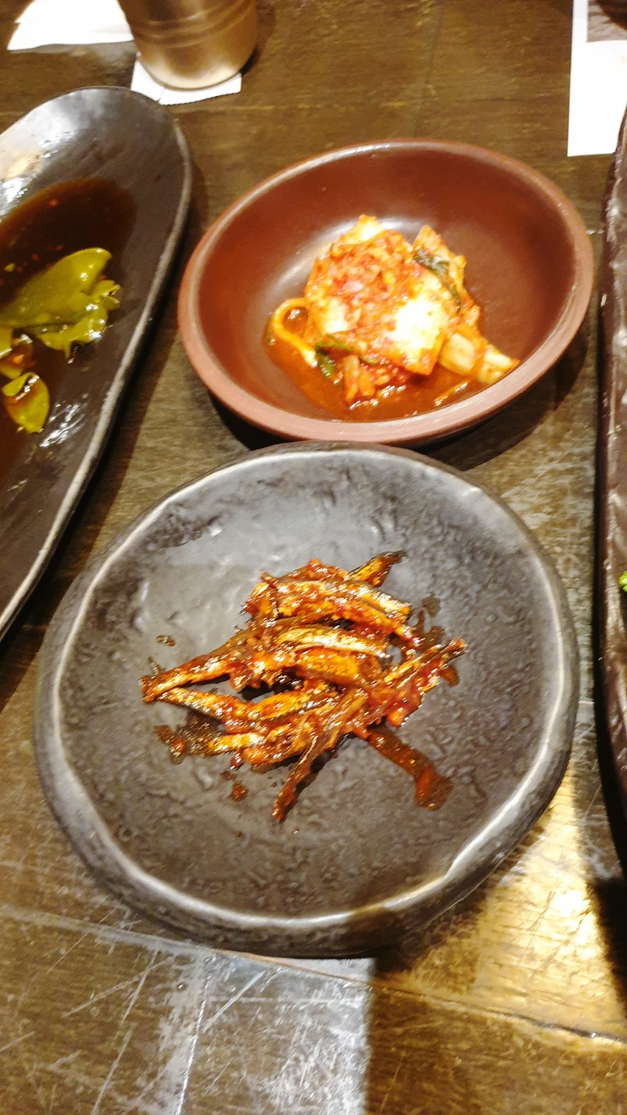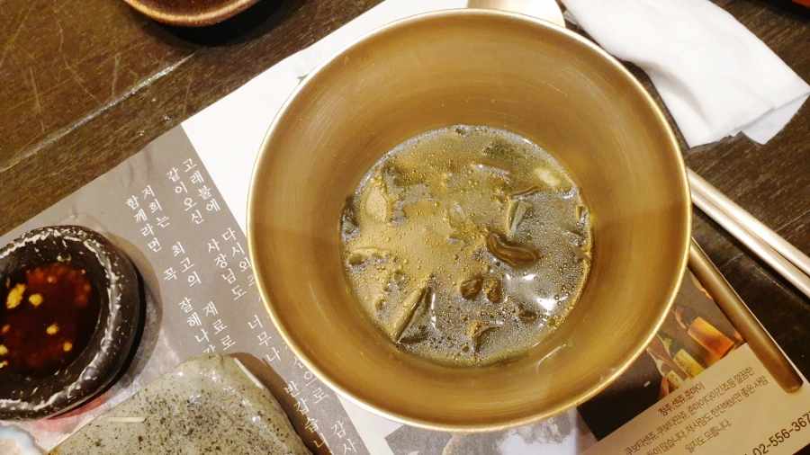 그다음에는 큰 생선구이가 나와서 이렇게 자리를 만들어놔야 해요. 멸치볶음과 김치, 깻잎과 메추리알 꽈리 볶음, 전통 김까지 단출하지만 다 맛납니다. 무엇보다 맛난 건 미역국이었어요. 여기 별거 안 들어 간 건데 어쩜 이리 맛있나요? 미역국 별로 안 좋아하는데 여기는 너무 좋아서 먹는 내내 기분이 좋더라고요.