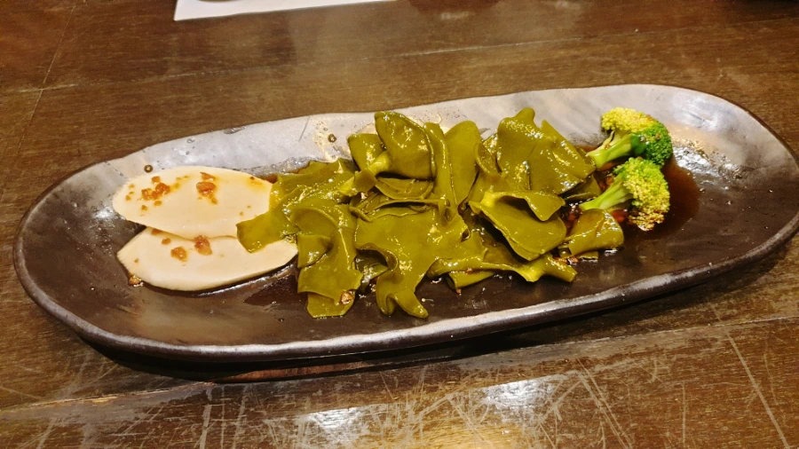 샐러드는 미역귀와 마가 양념에 잘 버무려져 나옵니다. 마가 있어서 양념이 찐득찐득함을 느낄 수가 있겠더라고요. 미역귀는 첨 먹어 봤는데 꼬들꼬들하고 맛나더라고요. 좀 씹기 힘든 점이 있었는데 해산물의 쫄깃함을 그대로 느낄 수 있었습니다. 미역귀는 미역의 머리 부분이고, 식이 섬유소가 풍부해 변비도 예방하고 다이어트에도 좋습니다.