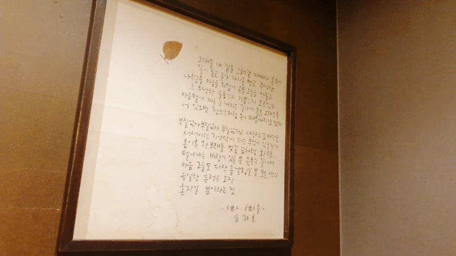 죽변항2방으로 안내받았어요. 방안에는 시가 한편 쓰여있는데 보는 재미도 남다르답니다. 김경미 시인의 <타인, 타인들>을 보니 마음이 온화해지더라고요.