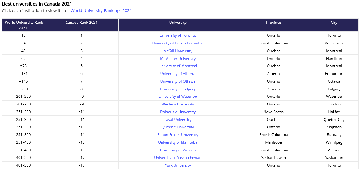 2021 THE 세계 대학 순위 - UBC는 캐나다 내 2위, SFU는 11위를 기록했다