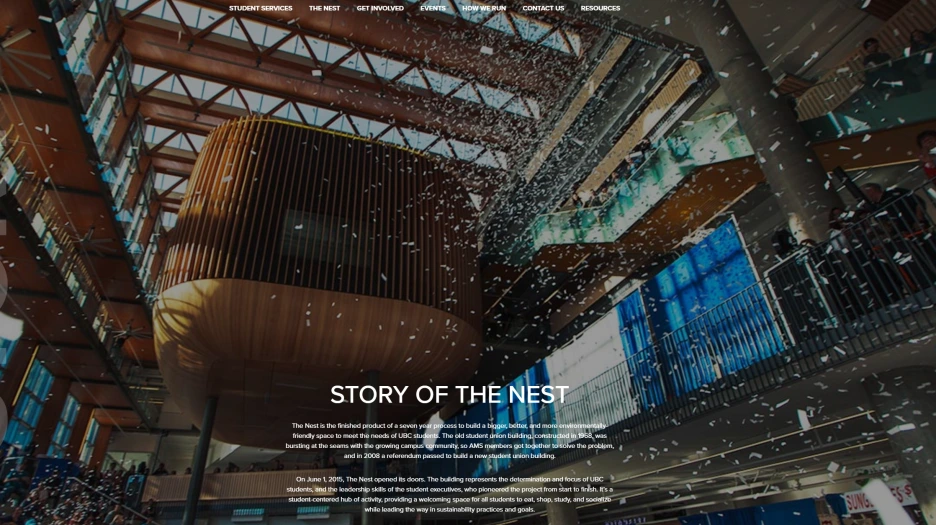 대학의 마스코트이자 스포츠팀은 Thunderbirds(천둥새)는 알파인스키, 야구, 농구, 캐나디안 축구, 아이스하키 등의 팀이 있다. 이들이 쉴 수 있는 둥지로 이름을 붙인 UBC Nest 건물이 있다. 이 둥지 건물 안에는 또 다른 둥지가 있어서 흥미롭다. 아래의 공식 사이트에서 재학생들이 직접 설명하는 가상 캠퍼스 투어(Virtual Tours)를 즐길 수 있다. 현재 영어, 불어, 중국어 버전으로 감상 가능하며 학생들의 안내로 캠퍼스 곳곳을 탐색 가능하다.
