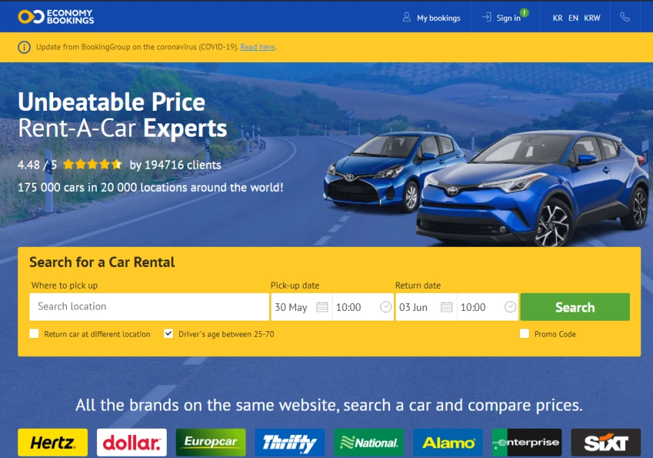 수화물을 가지고 렌터카 셔틀 장소로 향한다. 느릿느릿 가는 곳이기에 빠르게는 1시간, 오래 걸릴 땐 최대 4~5시간까지 걸리는 경우도 허다하다. 주로 이용하는 렌터카 비교업체는 아래와 같다. hertz나 enterprise는 고급형이고, 나머지는 중저가라 보면 되겠다. 예전에 dollar. 업체를 저렴해서 선택한 적이 있는데 셔틀도 두 번이나 타고, 싼 게 비지떡 값을 해서 고생을 한 적이 있다. 정말 1달러 값이었다. 만약 정말 싼 렌터카 업체라면 공항에서 엄청 멀고 추가 비용도 꼭 있다는 생각으로 적당한 걸 고르길 바란다. 렌터카는 현장에 가면 예약금 이외에 항상 더 많이 낸다. 보험을 들지 않겠다고 했는데 그러면 차를 가져갈 수 없다고 하는 곳도 있었다. 사이트는 연결만 해줄 뿐, 업체마다 규정이 다 다르므로 얼마씩 더 내는 건 감수해야 한다.