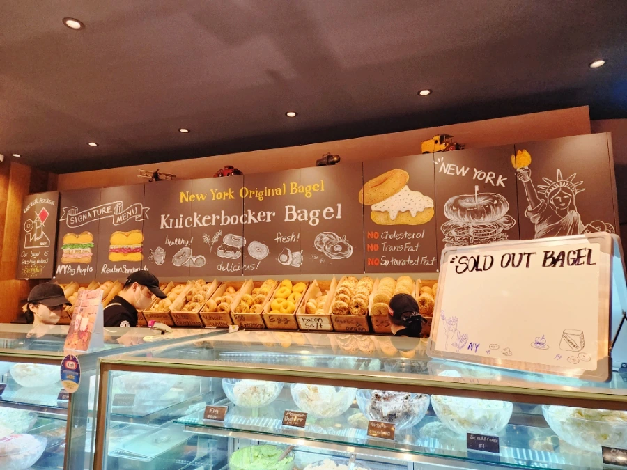 베이글 맛집 석촌호수 카페거리에 위치한 니커버커베이글을 다녀왔어요. 브루클린에 위치하고 있으며 월 매출 4억 도 찍은 핫한 곳입니다. 40년 이상 베이글을 반죽한 롤러 장인의 비법을 전수받아 한국에 2호점을 오픈했다고 하는데 엄청난 인기라고 하죠?