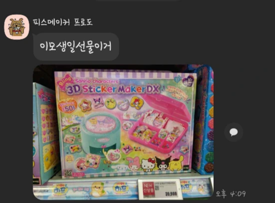 이제 크리스마스나 생일에도 본인이 원하는 제품을 검색해서 사달라고 하며 카톡을 보낸다. 그리고 돌직구로 말한다. '이모생일선물이거', '크리스마스선물로이거사죠'라고. 그리고 선물을 택배로 보내면 '왔떠><감따합닝당><'이라고 사진을 찍어 보낸다. 행복한 기분도 마음껏 표현한다.