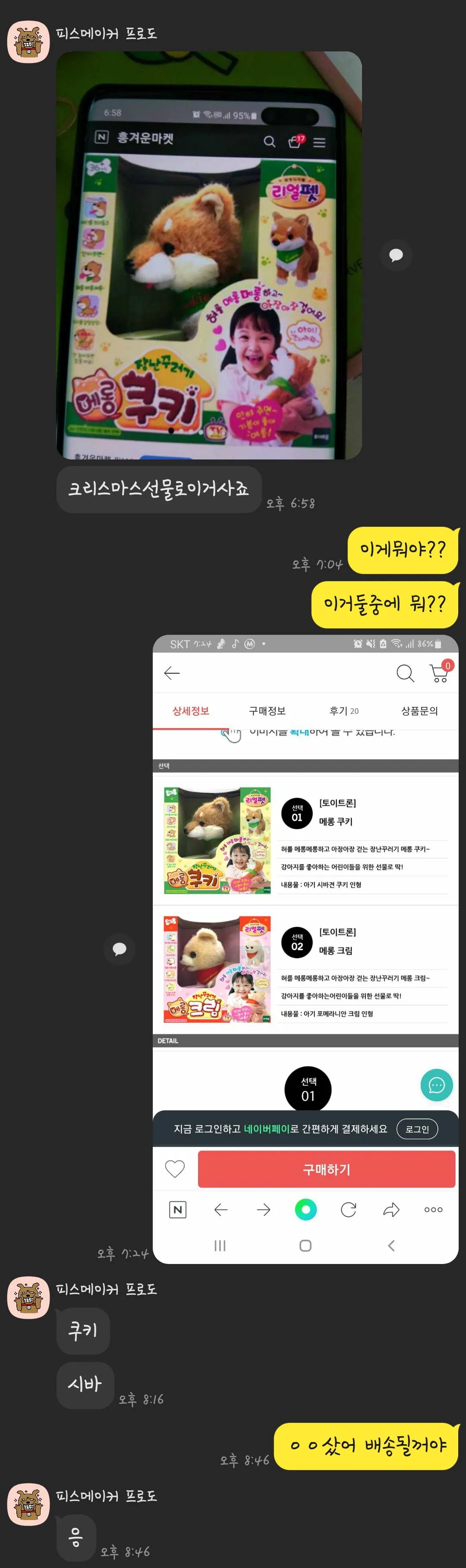 조카: "엄마 카톡으로 보냈어. 이거 사조."