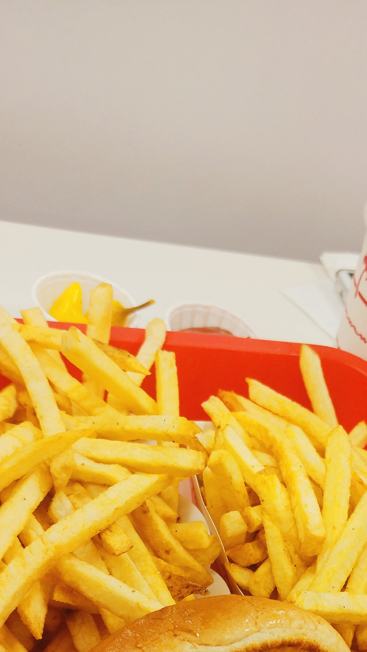감자가 핸드 컷이라고 했는데 듬성듬성 크기가 다른 게 보이더라고요. 저는 크라이버거의 감자를 좋아하는데 좀 더 작지만 뚱뚱하고 또 소금이 뿌려져 있어서 맛있었습니다.