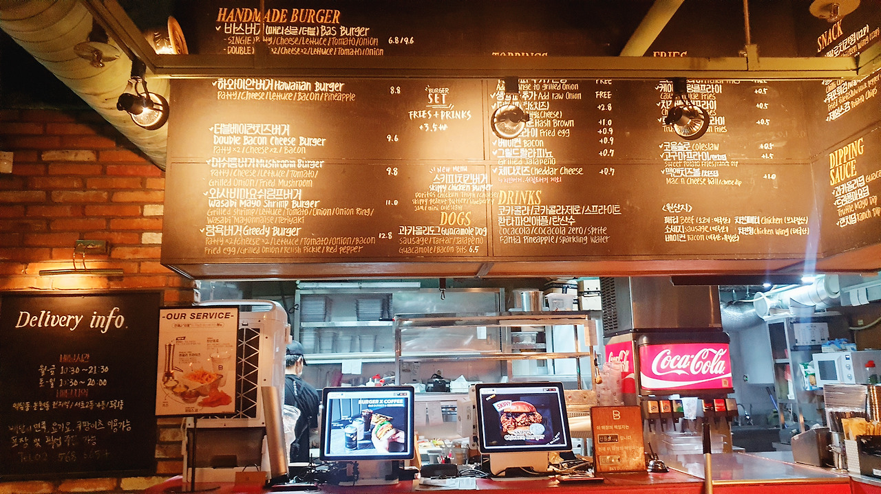 먹어본 버거 중에 가장 맛있는 것 같다. 엄청 크기도 해서 잘 눌러도 한입에 들어가기 힘든 버거가 바로 이 슈퍼 더블 버거다. 버거집 답지 않게 커피도 판매하고 있으며, 슈퍼라거와 슈퍼에일도 있다. 이곳에서 자랑하는 건 바로 수제 피클인데 듬성듬성 썬 피클이 미국에서 맛본 렐리쉬처럼 시고 달콤하다.