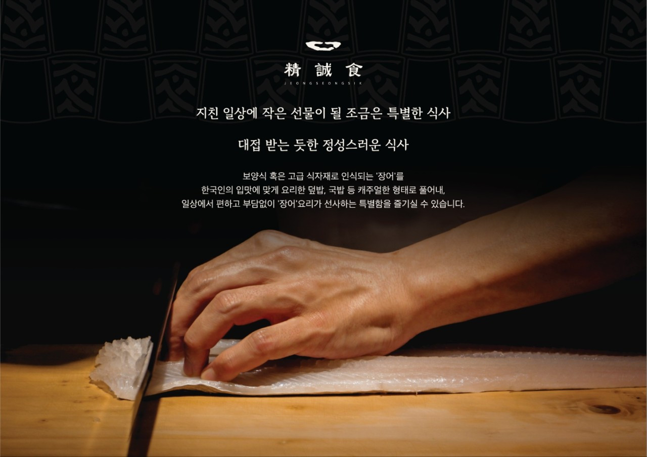 칠암항 작은 어촌 마을, 50년 전통의 눈꽃장어와 장어구이를 대접하는 곳이 바로 정성식 본점이에요. 너무 더워서 빨리 식당안으로 들어가느라 외관 사진을 못찍었는데 안쪽이 넓고 쾌적해서 좋아요. 미사 조정경기자 바로 앞입니다. 날씨 좋으면 산책해도 좋을 듯요. 시그니처 메뉴는 눈꽃장어, 장어구이, 장어솥밥, 장어전골이고, 눈꽃 정식과 돈까스를 주문했어요!