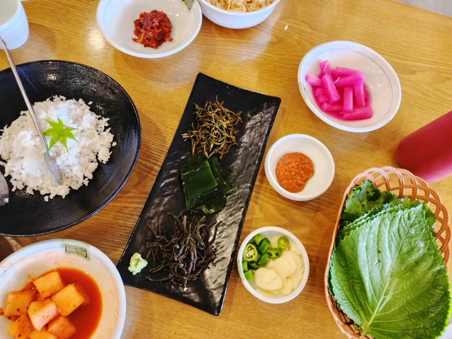 젓갈도 별도로 나와서 젓갈을 하나 올려서 첫쌈을 먹었고요!