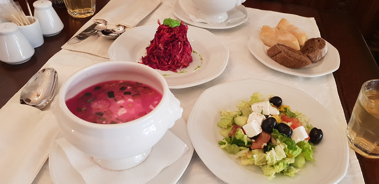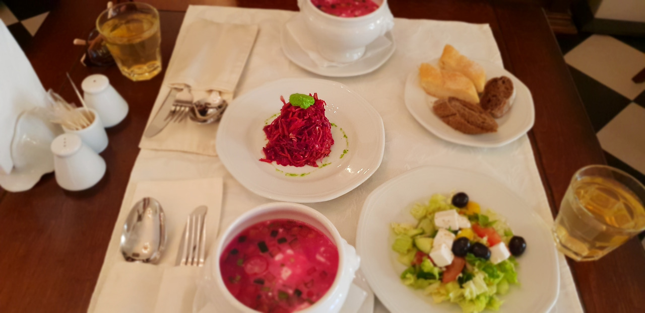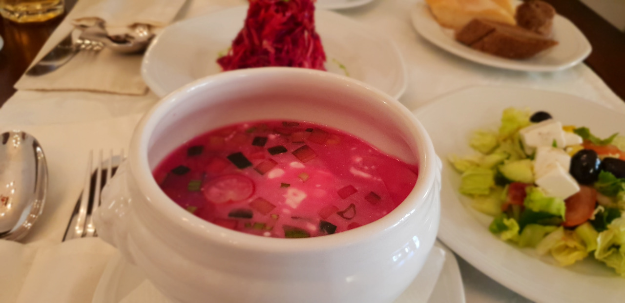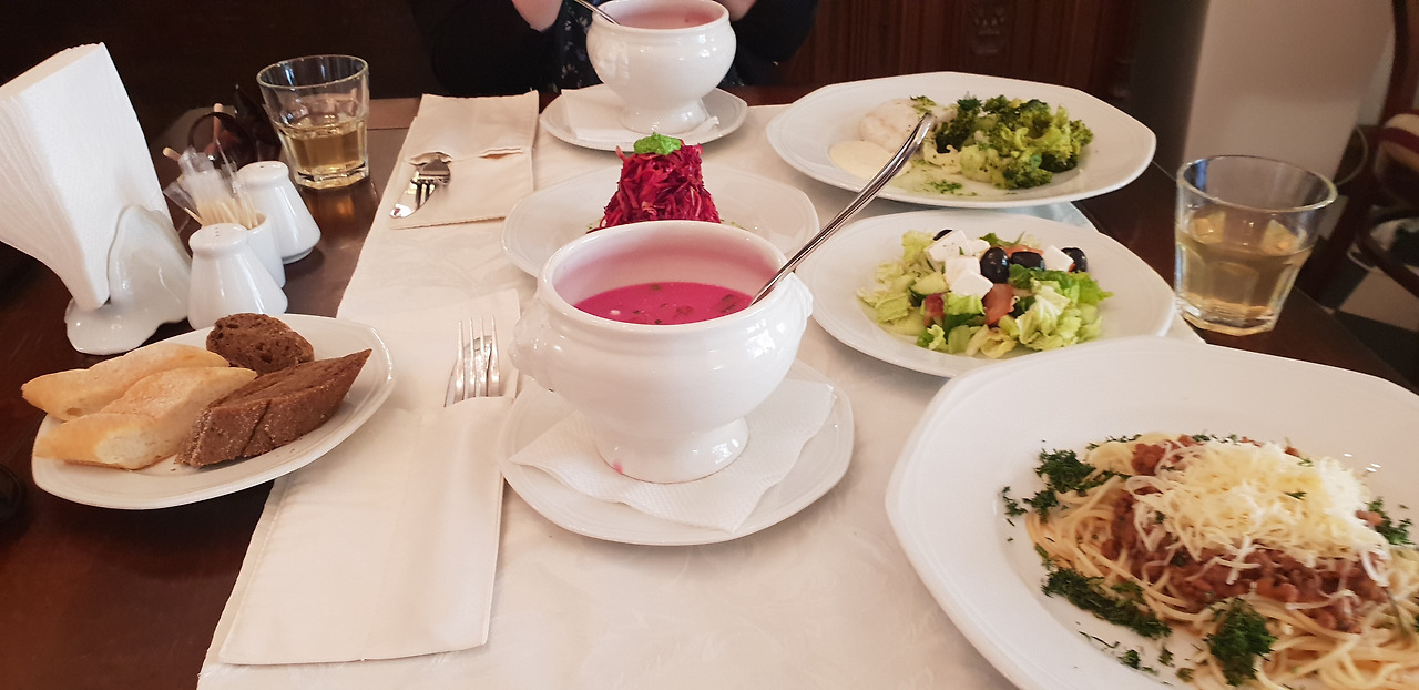 약 1시간 30분의 담당자의 열정이 담긴 캠퍼스 투어가 끝이 나고 아낌없는 감사의 인사를 전했다. 이후 일정에 대해서 물어 점심을 먹으러 간다고 하니 근처에 식당을 추천해 주어 바로 향하였다. 도보로 7분 정도의 거리에 있는 마인츠 허츠다. 마치 아늑한 러시아의 가정집에 초대받은 기분이다. 점심메뉴를 주문하니 콜드 수프인 보르쉬와 라자냐 그리고 그린 샐러드가 점심 한 세트다.