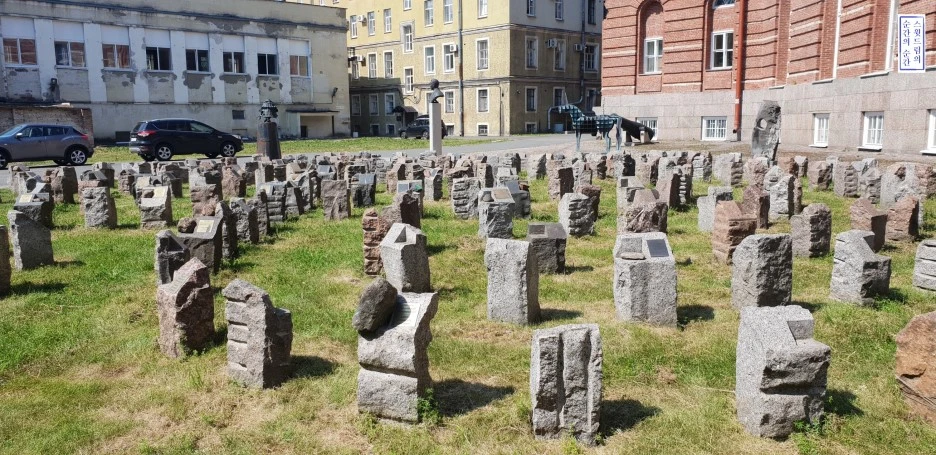 이후 도착한 장소에 여러 가지의 돌이 있는데 "이 돌들은 무슨 의미일까?"라는 질문으로부터 진정한 캠퍼스 투어는 시작되었다. 정답은 파트너 대학에서 기부한 돌이다. 상트페테르부르크는 매우 척박한 습지였던 네바강 하구에서 도시 건설을 하기 위해 매우 힘들었다고 한다. 이에 여러 나라로부터 돌을 기부받곤 했었는데, 세계 최고의 도시를 만들려 했던 노력을 본받아 상트페테르부르크 대학도 파트너 대학에서 돌을 기부받아 이렇게 멋진 공간이 만들어졌다고 한다.