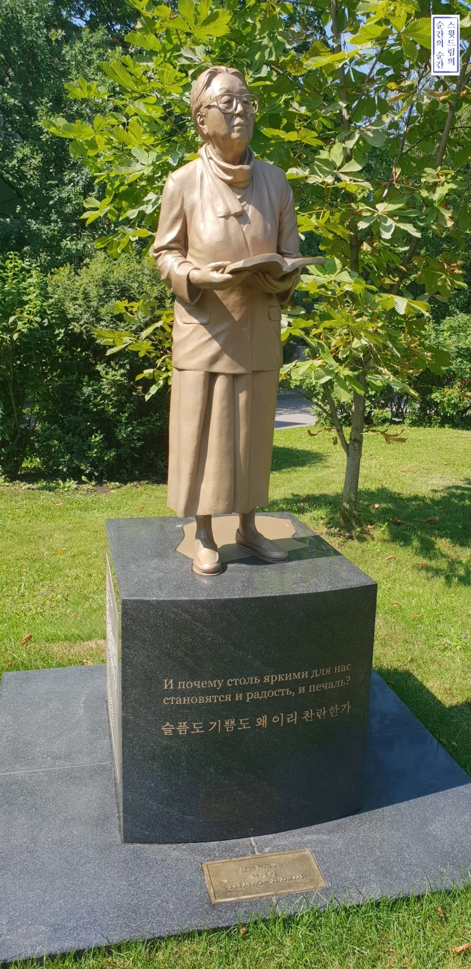 투어 담당자가 매우 신나 하며 다음 장소로 발걸음을 옮겼다. 그녀는 한국인들이 온다고 해서 기대했다면서 안내하였다. 2018년 6월 20일에 세워진 '토지'의 작가 박경리 선생의 동상(135cm)이었다. 2013년 11월 서울 중구 롯데호텔 앞 '푸시킨 플라자'에 러시아 대문호 알렉산드르 푸시킨의 동상이 세워진 것에 대한 답례이자 한러 우호를 높이는 문화 교류의 하나로 추진됐다. 같은 해 이 대학 내 한국학과에 선생의 이름이 들어간 강좌가 개설됐다. 대한민국 현대문학을 대표하는 소설가 동상을 파트너 대학에서 만나니 너무나도 반가웠다.