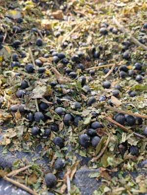 부러진 가지, 부서진 잎, 흙, 그리고 그 사이사이에 껴있거나 흩어져있는 까만 콩을 가려내기란 쉽지 않다. 좀 더 효율적인 방법을 찾아 순서도 바꿔보고 도구도 바꿔보고 했지만, 일만 더뎌졌다. 마음을 가다듬고 정공법을 택했다. 우선 갈퀴로 부러진 가지와 큰 잎사귀를 훑어 낸다. 얼기설기한 갈퀴 살 사이로 콩과 작은 잎, 흙, 부서진 가루는 그대로 남는다.