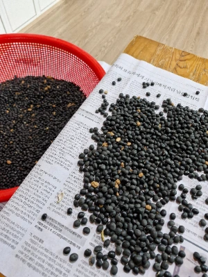 올해는 콩을 많이 심었다. 작년 수확한 콩을 이집 저집 나눠 먹었던 기억이 좋아 좀 더 많이 심었는데, 마른 콩을 뽑아 쌓으니 이만저만 많은 게 아니다. 엄두가 나지 않아 말린다는 핑계로 비닐하우스 안에서 보름이나 방치했다.