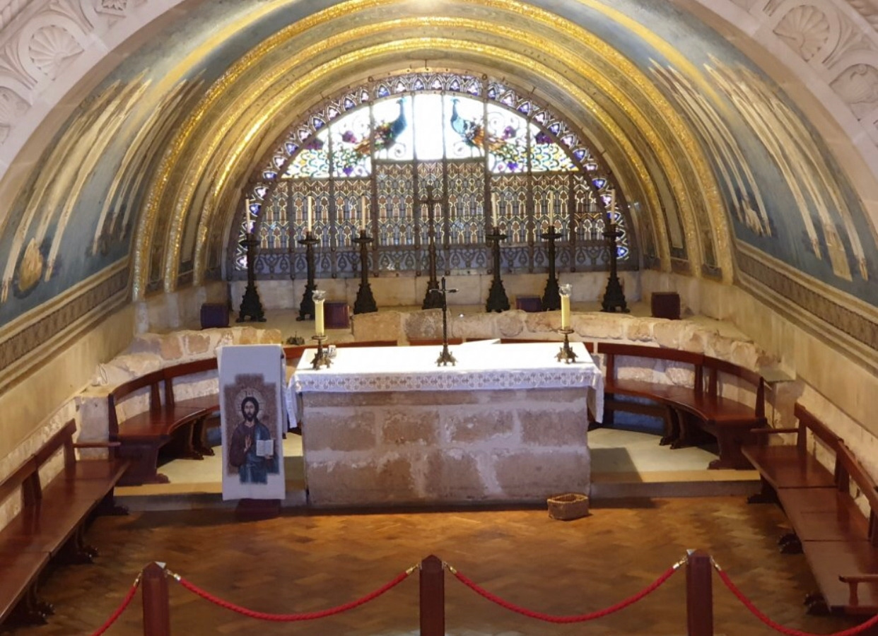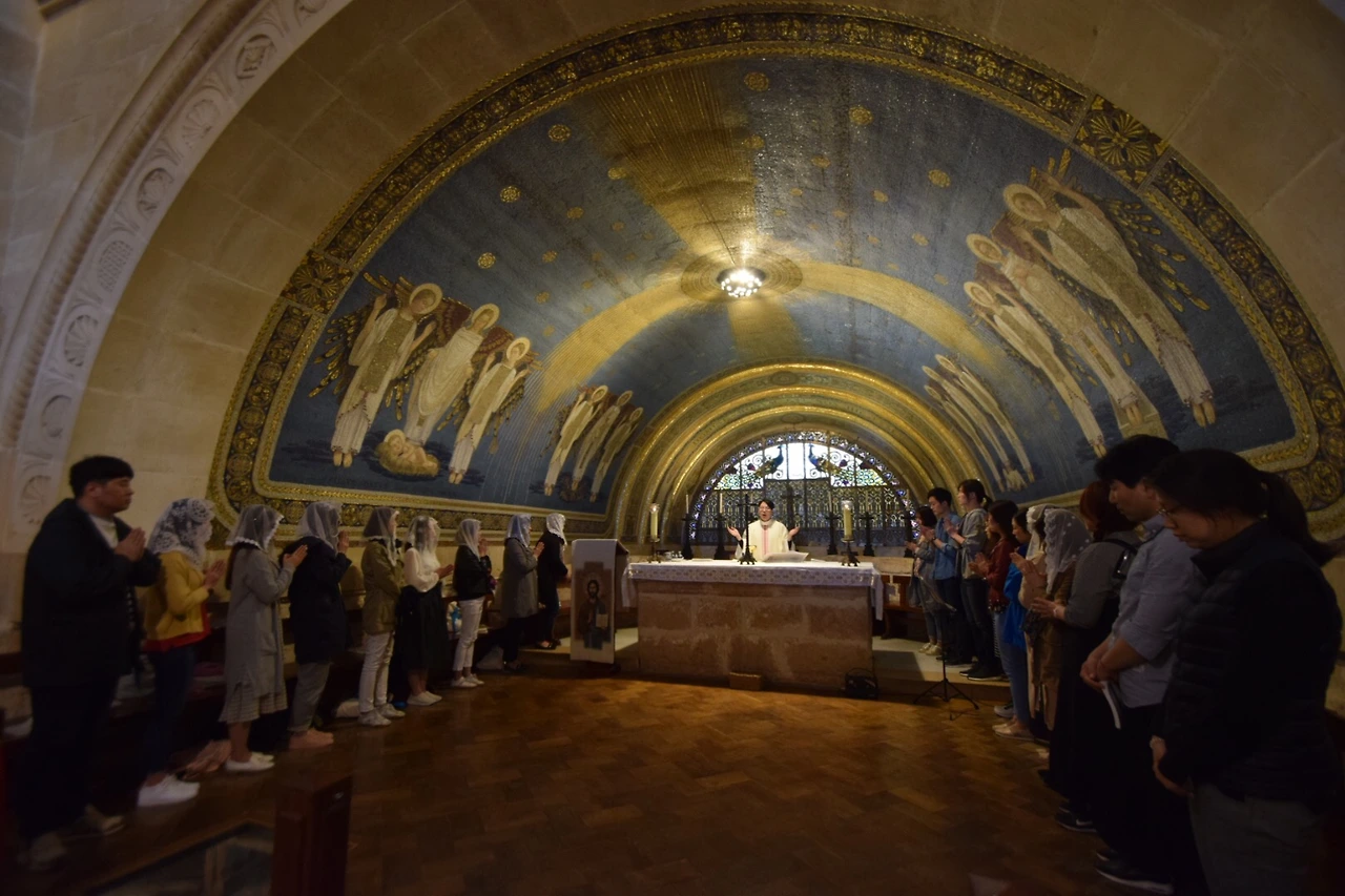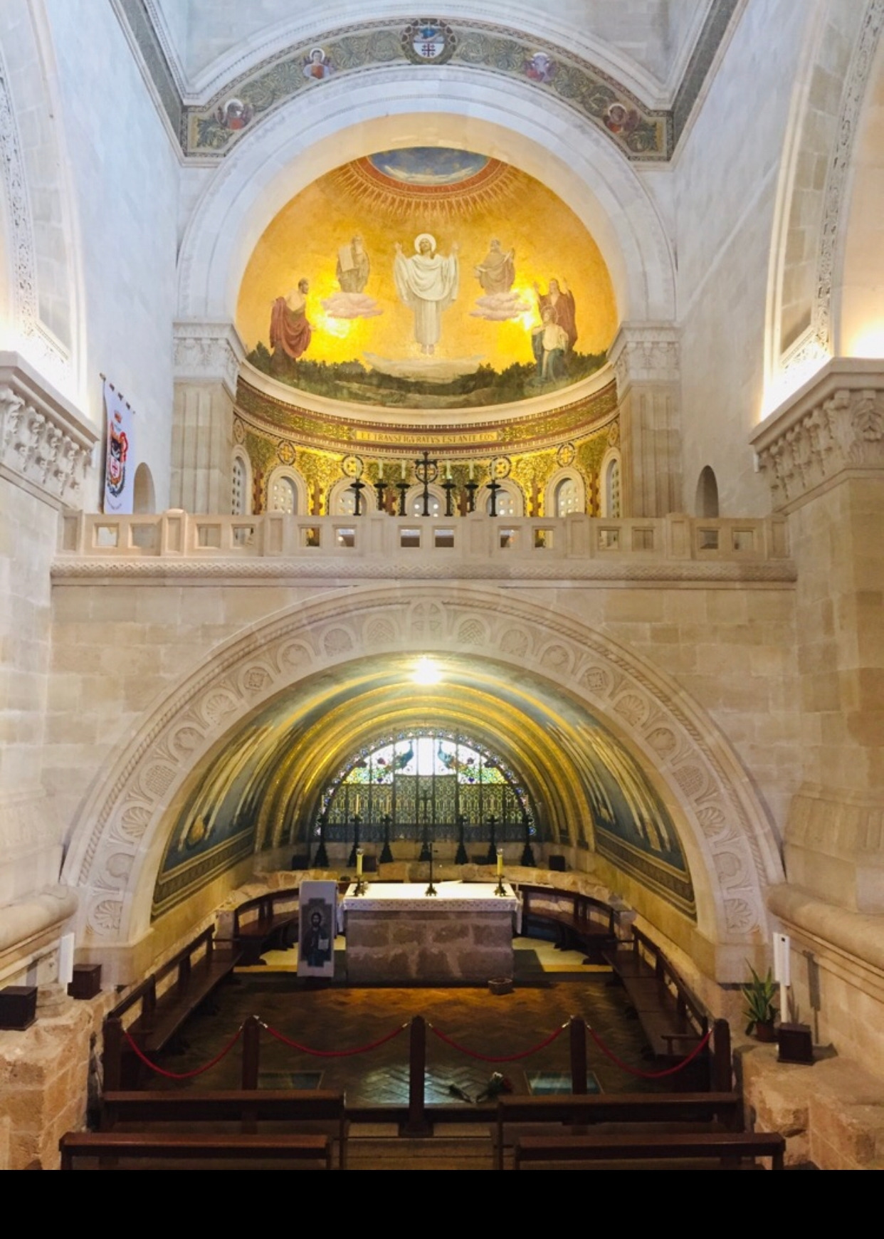 위쪽에는, 성경내용대로 예수님의 거룩한 변모 곁에 모세와 엘리야, 그 아래 제자들이 보고 있는 모습이 그려진 벽화와 제대가 있었고, 그 아래층에도 미사를 드릴 수 있는 작은 공간이 있었다. 우리 순례단은 아래쪽에서 오붓하고 사랑 넘치는 미사를 함께 했다