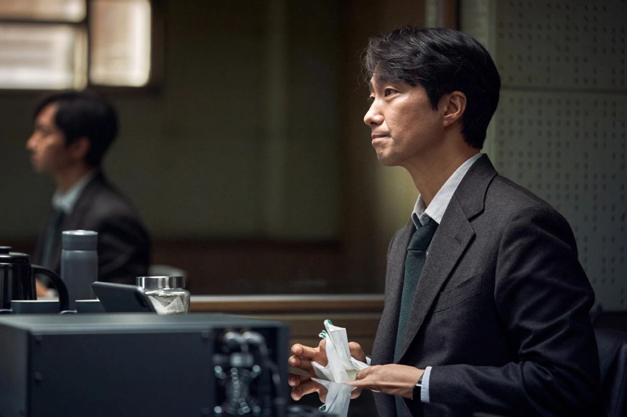 그런데 이건 저만 느꼈는지, 아니면 원래 영화 의도에도 있는지 모르겠지만, 해준은 서래에게 첫눈에 반한 듯하던데요. 저만 그렇게 느꼈나요? 산에서 추락한 '기도수'란 남자의 잠금화면은 기도수와 서래가 함께 찍은 사진이었는데, 해준과 후배 형사는 사진만 보고 서래가 기도수의 딸이라고 생각하죠. 그런데 시신을 확인하기 위해 경찰서에 온 서래는 '기도수 씨 아내 송서래입니다'라고 얘기를 해요. 그 순간 영화는 시신이 있는 곳에 들어오는 서래의 모습은 보여주지 않고, 서래를 바라보는 해준의 얼굴만 보여줍니다. 약간 놀라는 눈? 박해일 배우의 디테일한 연기가 빛나는데요, 서래가 그곳에 들어오는 일보다 해준의 마음이 움직였다는 사실이 중요하기에, 영화가 보여주는 건 해준의 얼굴 뿐이었습니다.