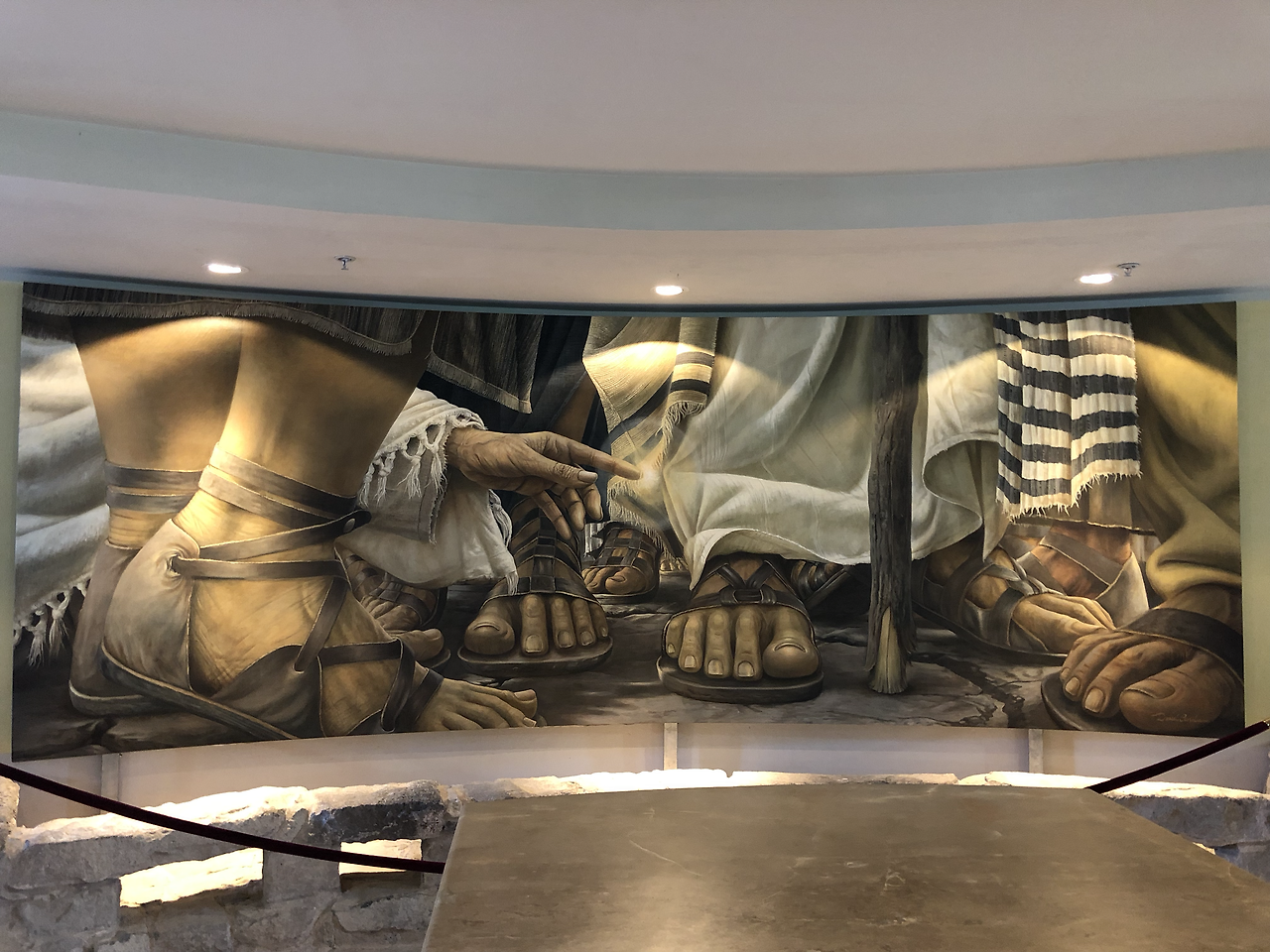 마르코 복음 5장에 나오는 이야기. 열두 해 동안이나 하혈하는 여인이 예수님을 만나는 그 순간을 담은 대형 그림이 있었다.