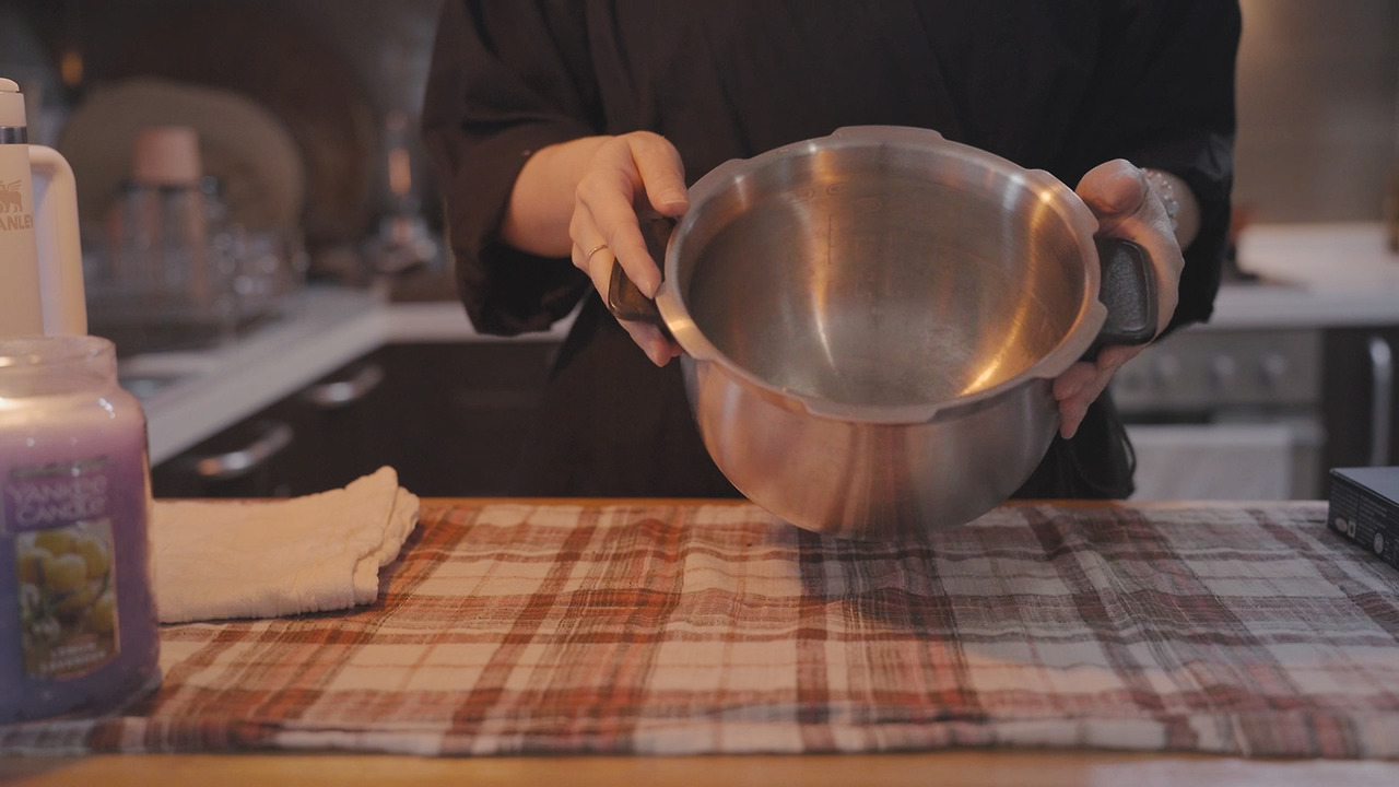 넓은 쟁반에 넣고 뚜껑을 닫아 둬요