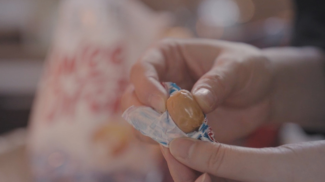 겉은 캐러멜맛 사탕이고 안에는 밀크 케러멜이 들어있어요