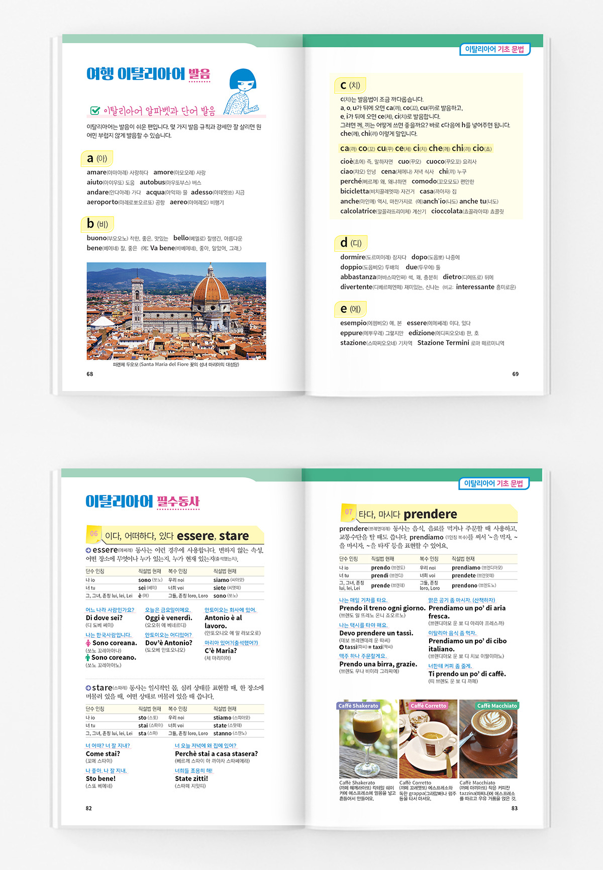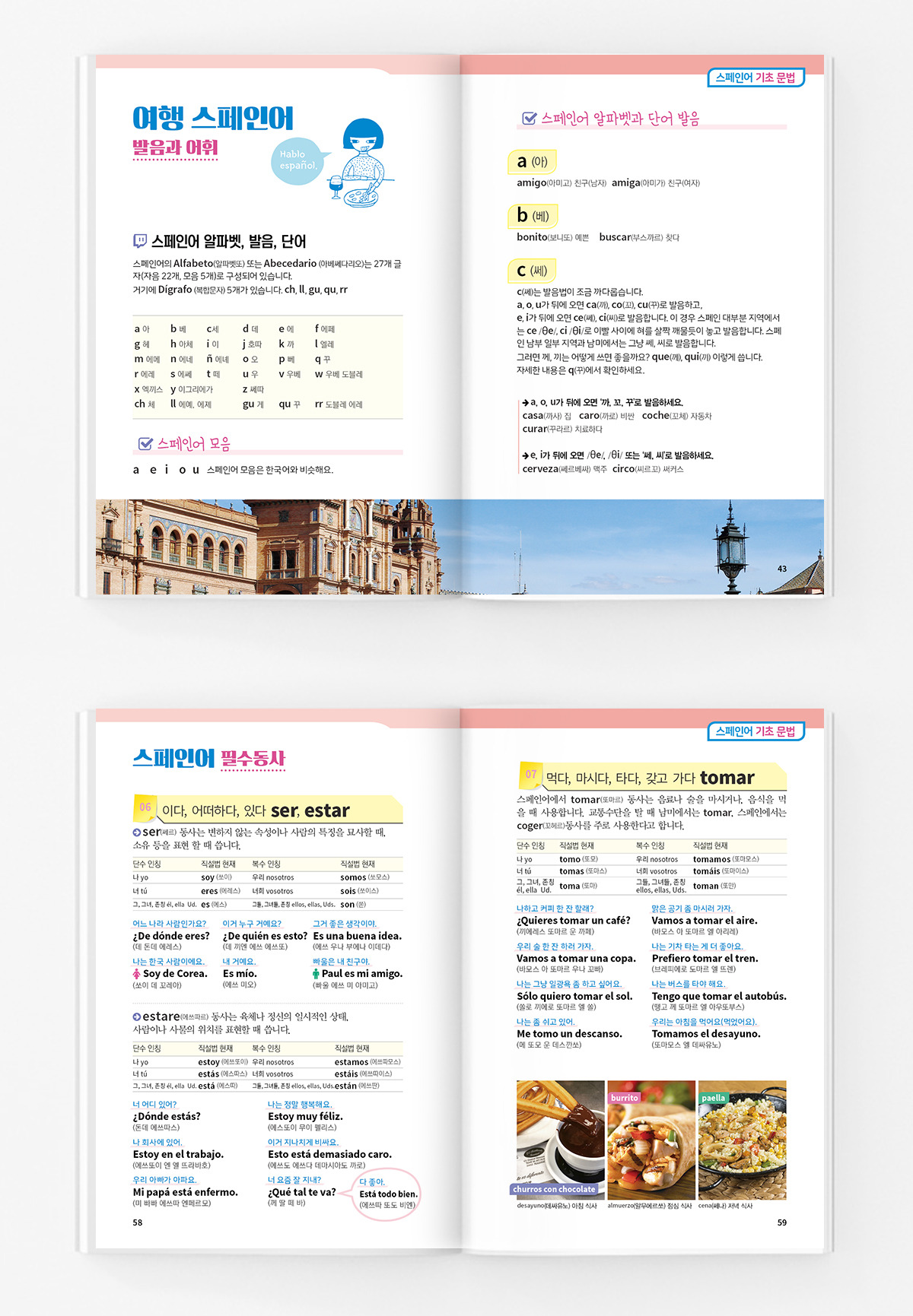 여행을 준비하고 있거나, 여행을 꿈꾸고 있다면 이 책을 추천한다. 펼치기만 해도 행복해지는 책이다. 화사한 색감과 귀여운 일러스트에 기분이 밝아지고, 여행지의 아름다운 풍경에 눈 호강을 하게 된다. 내용 면에서는 상황에 따라 한눈에 보기 좋게 정리된 문장들이 상당히 알차다. 군더더기 없이 꼭 필요한 표현만으로 꽉꽉 채웠다.