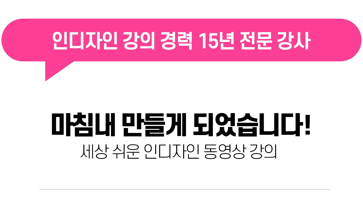 인디자인을 한 번도 배워보지 않은 10대부터 70대까지 모두 인디자인 강의를 잘 따라 했어요. 많은 분께 강의를 했던 노하우를 꼼꼼하게 잘 담아서 쉽고 알찬 동영상 강의를 준비하겠습니다.
