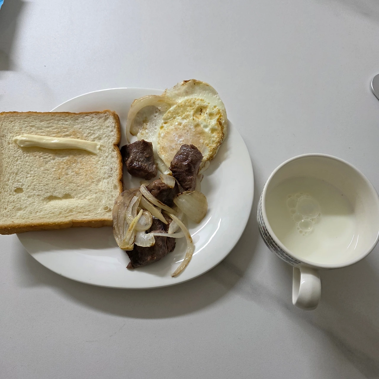 집에서 먹었다. 버터가 왔기에 버터 2조각. 그리고 고기와 식빵. 탄수화물을 0으로 줄이기에는 몸이 폭주할 수 있기에 탄수화물의 양은 서서히 줄이기로 했다.