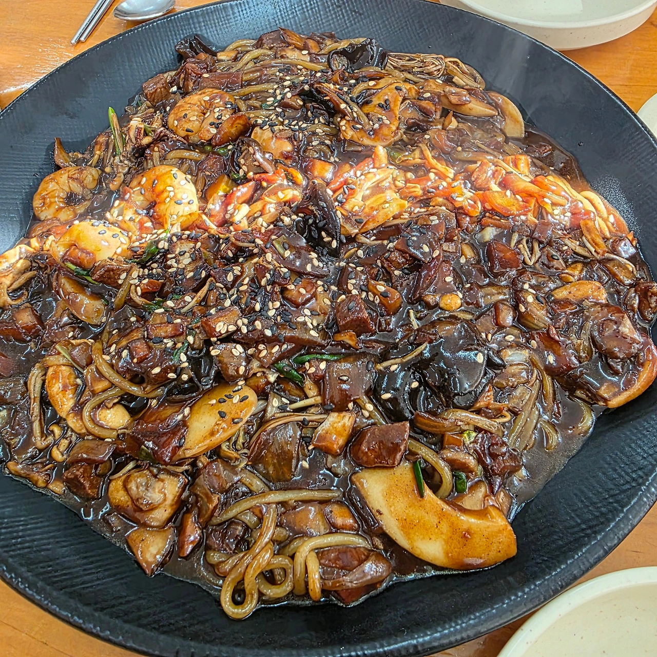 짜장면과 밥. 하지만 양을 조절했다. 점심도 적당히 먹으려고 했으나 엄마가 먹고 싶다고 졸라서 먹게 된 해물 짜장.