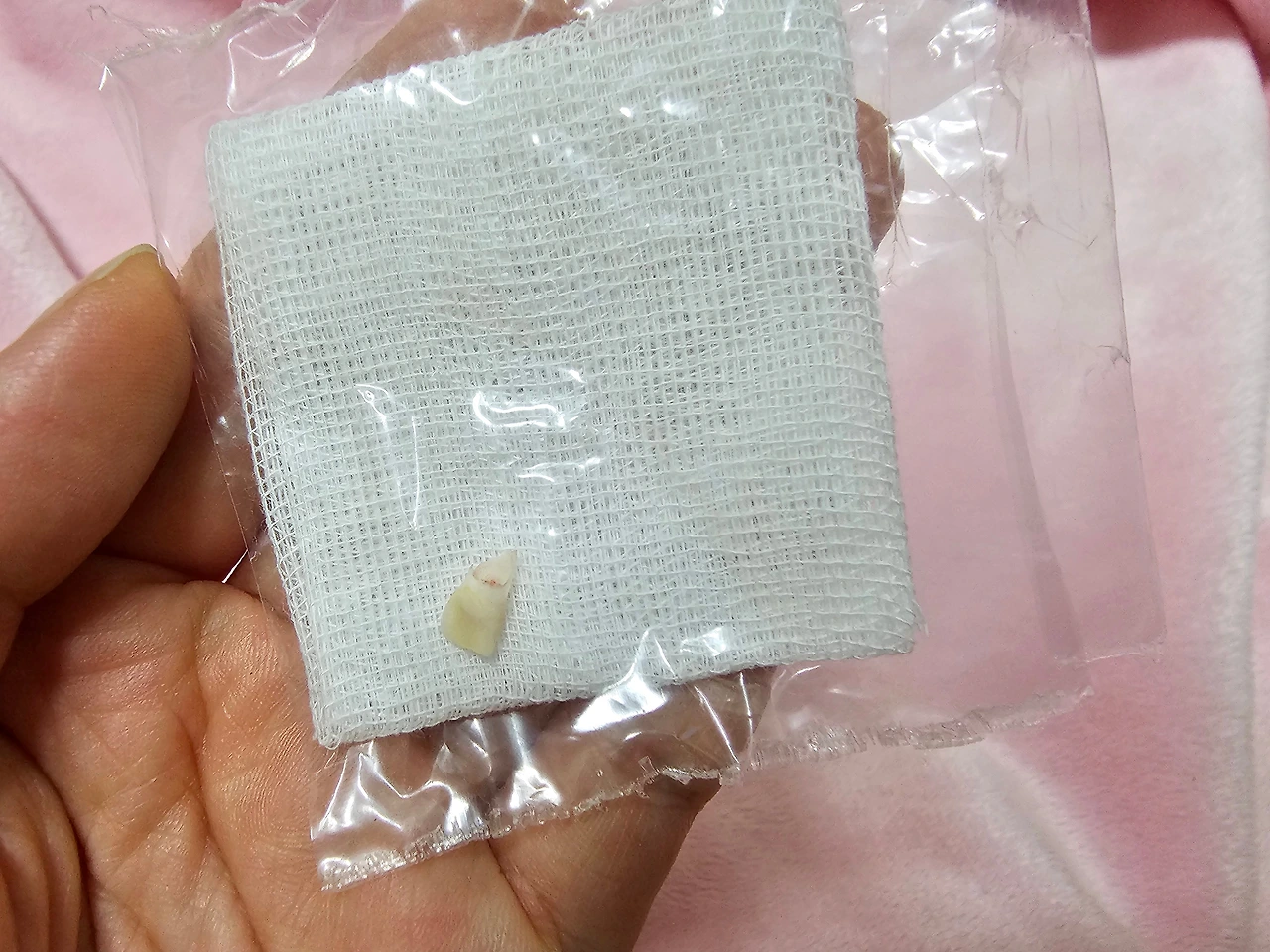 지난번에는 절대 안 된다며 버텼으나 한 번에 두 개를 뽑았던 충격이 컸었는지 이번에도 흔들리는 두 개 중 하나는 본인이 해결했다.