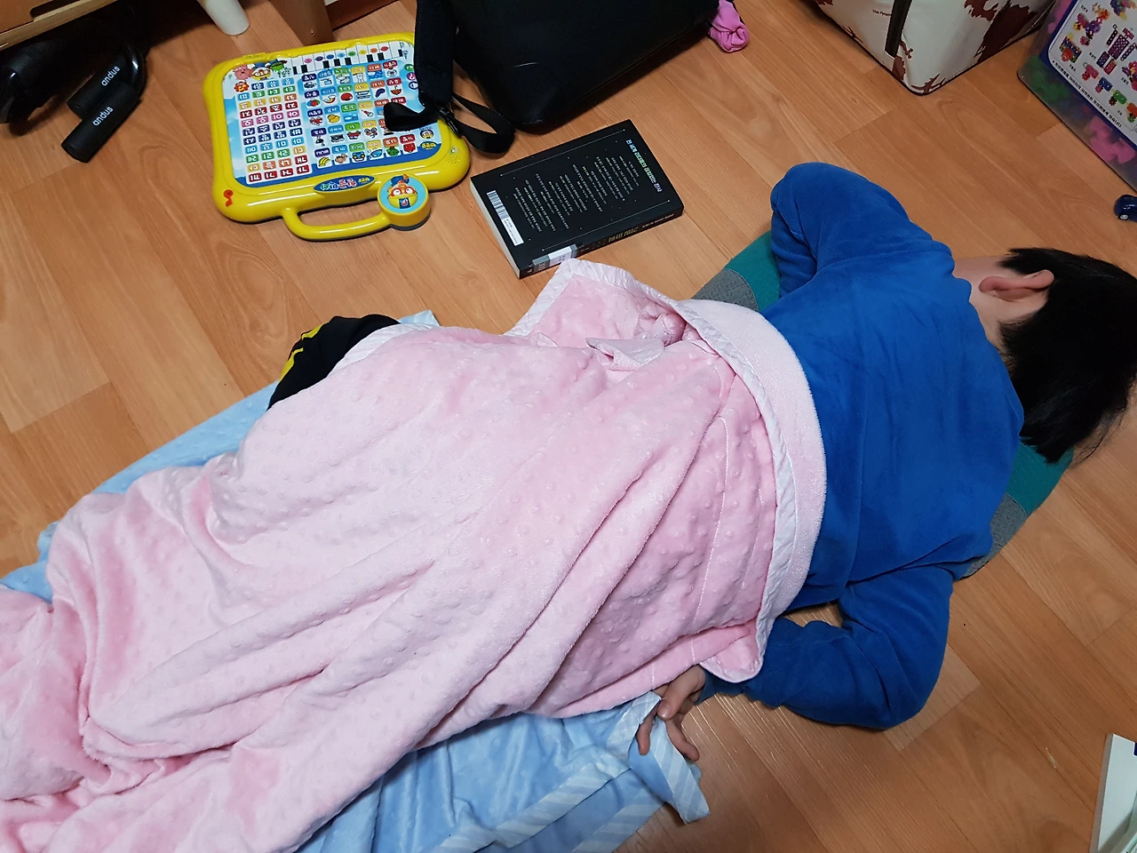 이불속의 온기 덕분에 두 볼이 빨갛게 물든 아이는 뭔가 해냈다는 성취감 가득한 얼굴로 나의 무릎에 앉는다.