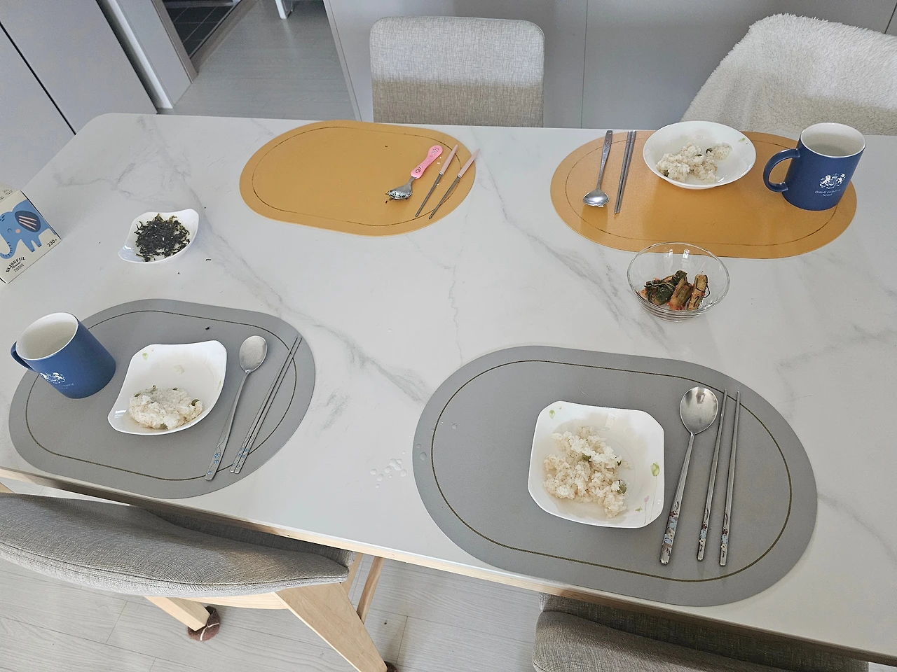 - 밥그릇, 국그릇은 선반 위에 있기에 못 꺼내고 접시로 모두 사용.