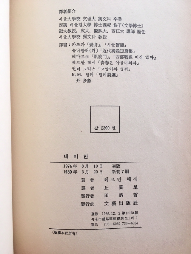 1989년 7쇄 판, 문예출판사의 데미안.....