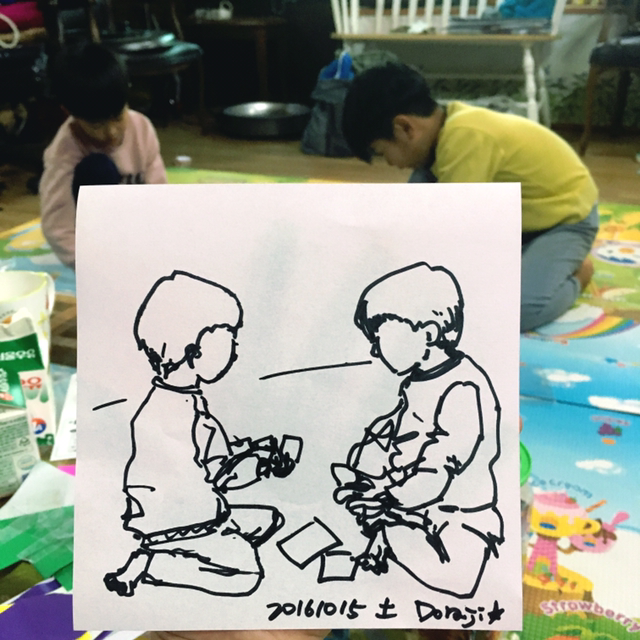 다른 날 처럼 채색도 하지 못했고, 자세한 표현도 생략했지만, 아이들의 순간을 색종이에 잡아둔 것 만으로도 기분이 좋다.