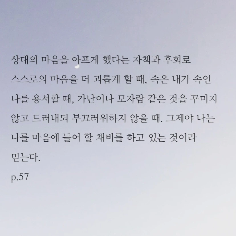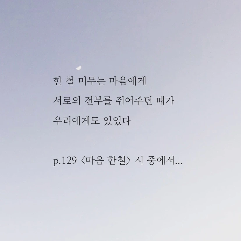책을 사길 참 잘했다는 생각이 들면 괜시리 어깨에 손을 올리게 된다. 나의 취향과 같은 누군가를 이렇게 종이로, 글자로, 문장부호와 여백으로 만나게 되면 꿈에 그리던 오랜 벗을, 너무나도 잘 맞아 서운할 것 없고 아쉬울 것도 없는 완전 찐친을 만난 것만 같아 가슴이 또 뜨끈해온다.