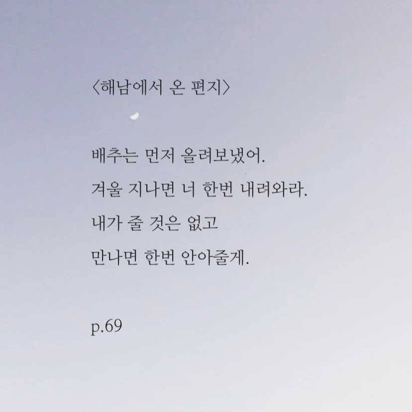 술술 읽히되 읽는 중간중간 멈추어 생각하고, 마음 가득 고민하고 상상하게 하는 글, 그래서 쉬이 읽히는 반면 완독에 시간이 걸리는 책. 닰살스럽지 않은 비유와 생각지 못한 은유로 쓰인 시집. '아, 그렇구나....'가 아닌 '아, 나도 그랬는데....' 하게 되는 책. 덮고 나서 완독의 기쁨을 주체할 수 없는 책 보다는 두번, 세 번 읽어도 아직 완독하지 못한 듯 한, 내년에, 5년 후에, 10년 후에 다시 펼쳐 읽고 싶은, 영원히 시원한 완독을 하지 못할 것 같은 그런 책이 좋다.