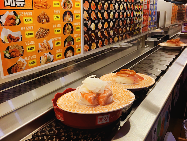 내가 좋아하는 초밥이 저 멀리 오고 있다.