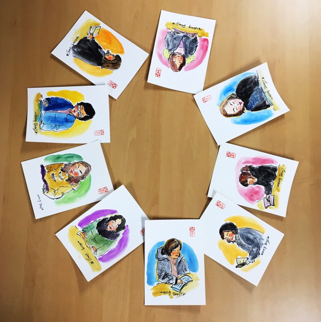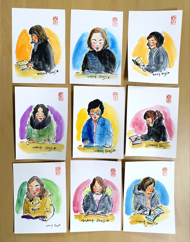 책으로 만난 사람들이니 책을 보는 모습을 그리는 걸로~^^