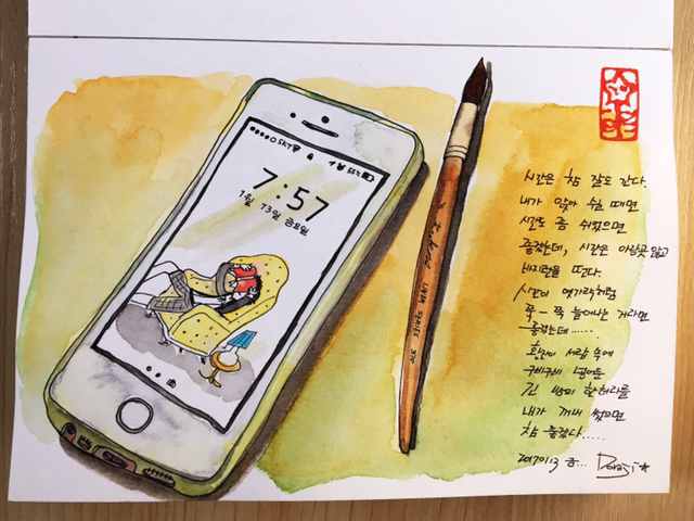오늘 그림의 모델, 내 핸드폰과 붓
