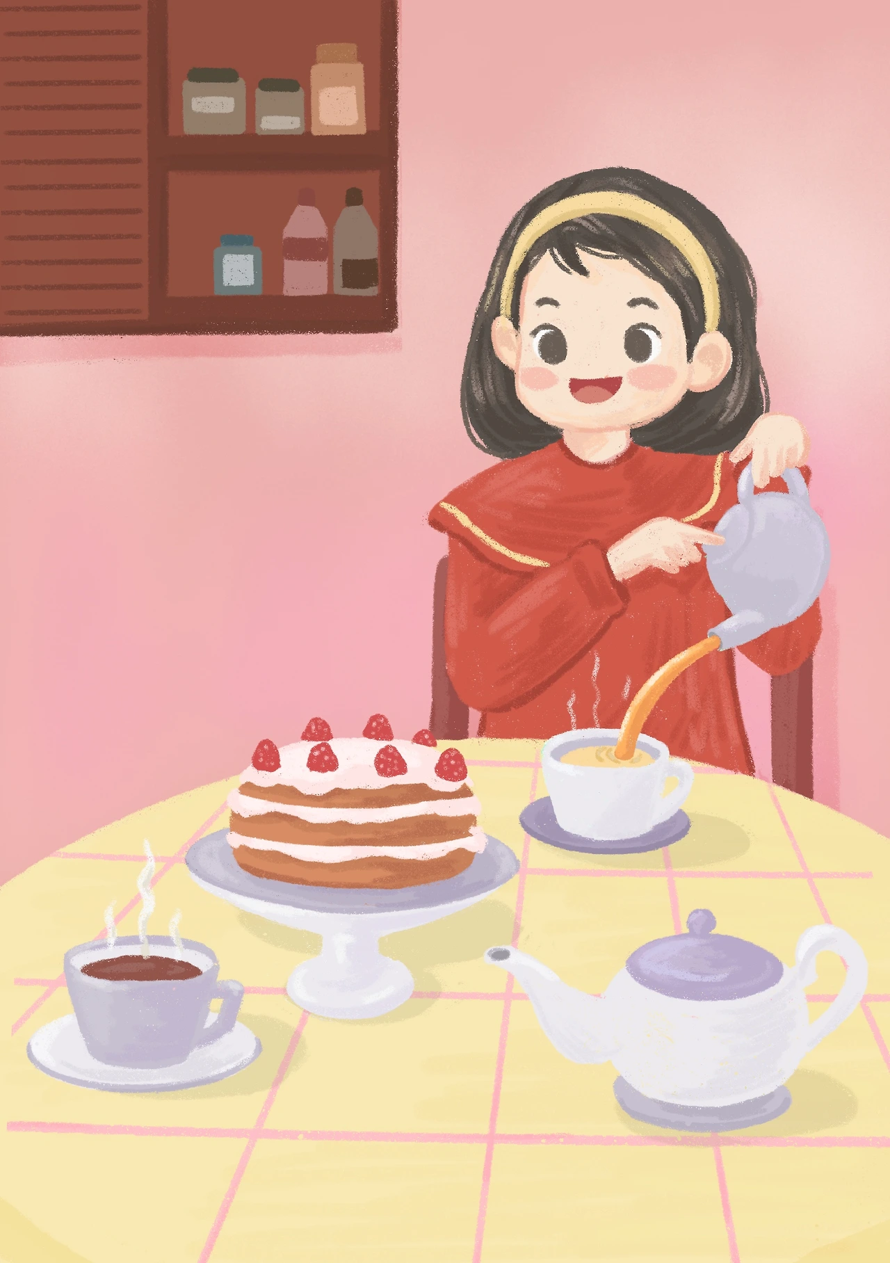 따뜻한 밀크티와 달콤한 생크림 케이크,