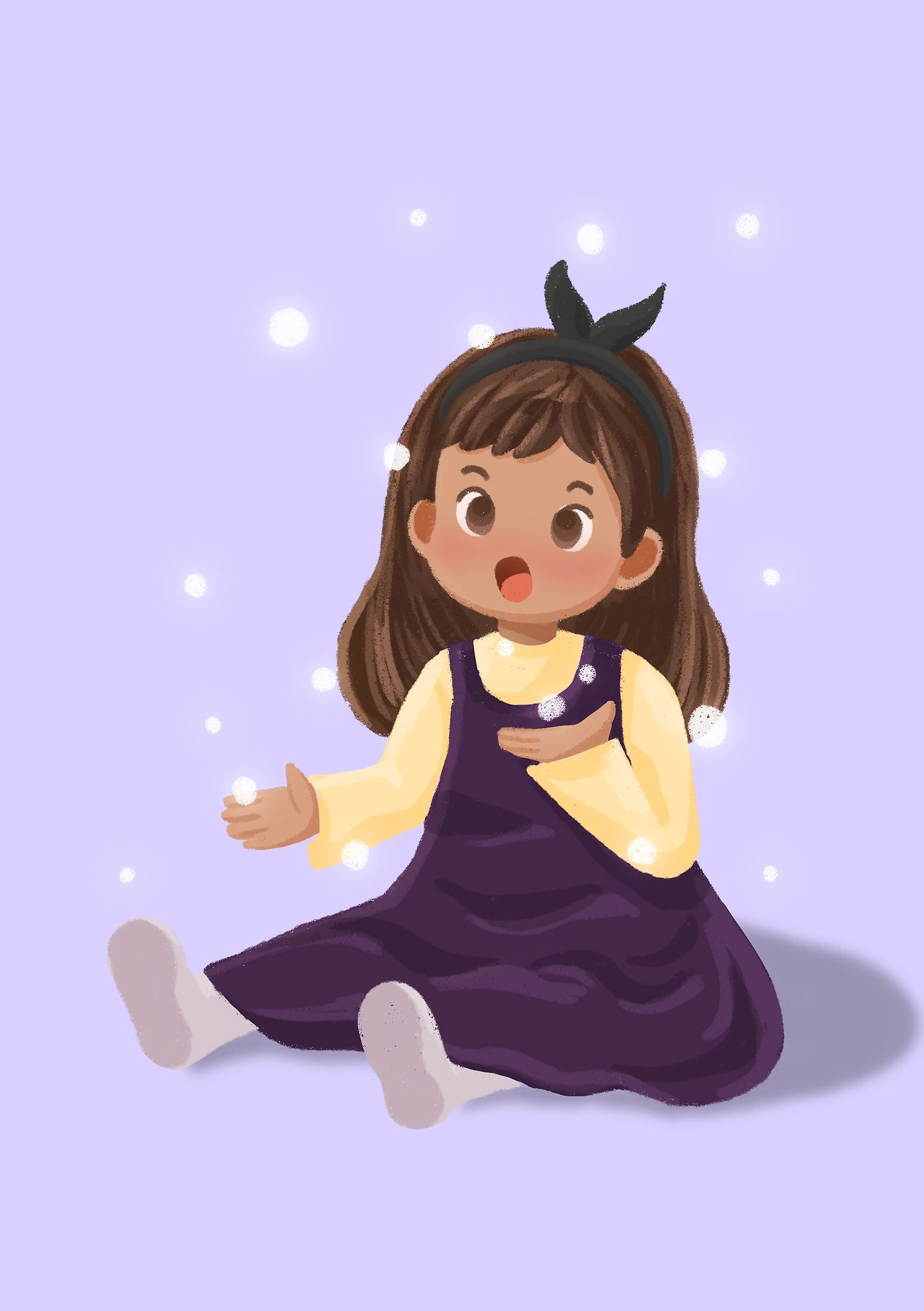아이의 해맑은 눈으로 사뿐히 내리는 눈을 흥미롭게 바라보는 모습입니다.