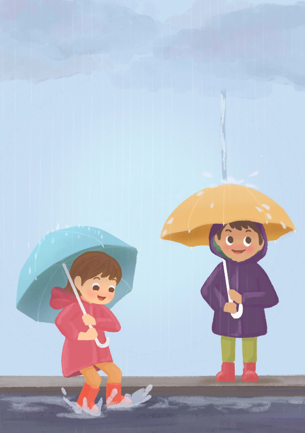 빗소리를 듣고, 물웅덩이에 점프하면 너무나 재밌죠.