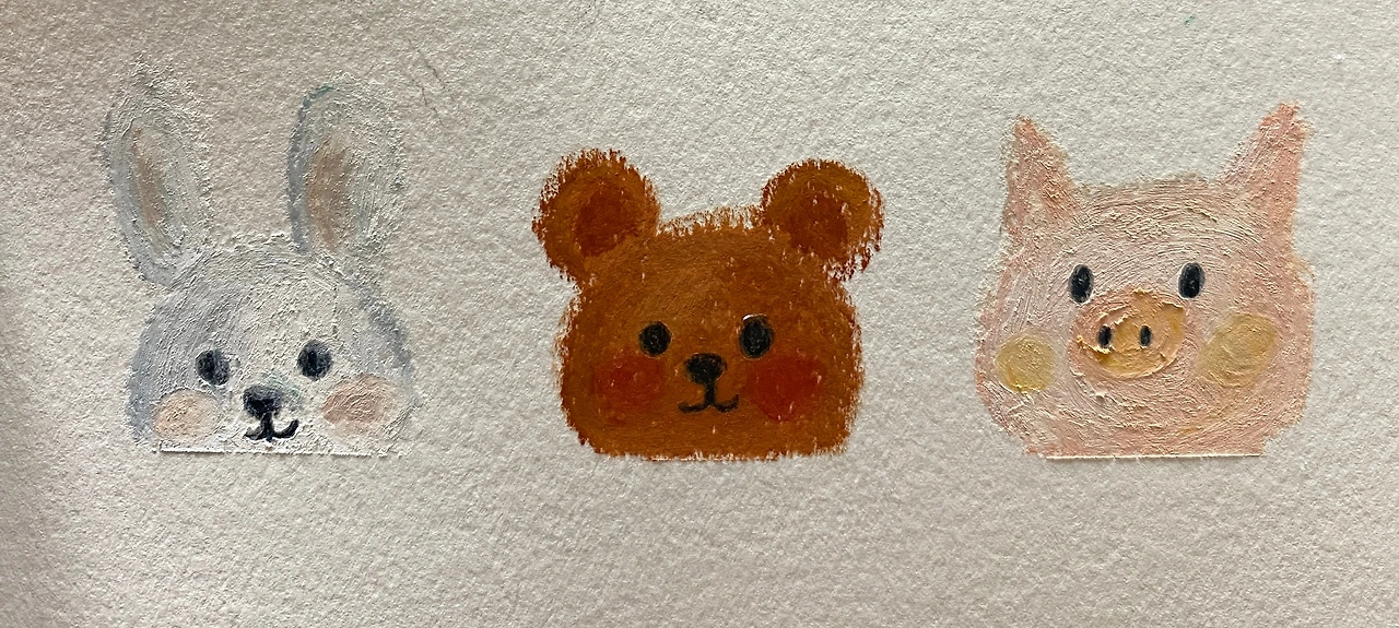 생각보다 비싼 가격이기에 24색을 살 것인가, 48색, 96색을 살 것인가를 고민했던 시간보다도 더 짧게 잠시 잠깐 오일파스텔을 끄적였던 것 같다. 호기롭게 덜컥 샀지만 재료의 사용법도 배우지 않은 터라 마음처럼 그려질 리 없었다. 이상하게 그려지는 것도 참기 어려웠지만, 손바닥 반만 한 노란 토끼를 그렸을 뿐인데, 노란색 오일파스텔은 많이도 닳았다. 이런저런 핑계로 책상의 중심에서 점점 멀어진 오일파스텔 상자는 서랍 속으로 들어가는 운명을 맞이했다.
