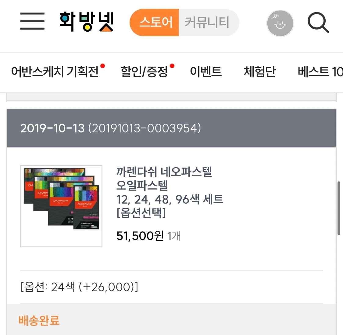 우연히 크레용토끼(@crayon.rabbit)님 인스타그램 피드를 보다가 오일파스텔로 그린 그림에 빠졌다. 부드러운 색연필 그림과는 다르게 거칠고, 투박한 질감의 그림이 색다르게 느껴졌고, 재료만 있으면 그릴 수 있을 것 같았다. 당장 화방넷에 접속해서 까렌디쉬 오일파스텔 24색을 구매했다. 수시로 배송진행상태를 새로고침하며, 도착하기만을 기다렸다. 이틀 후 오일파스텔이 내 손에 들어왔다.